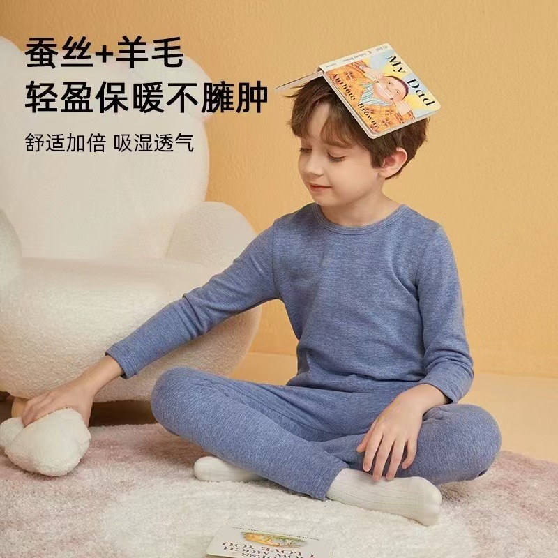 어린이용 보온 속옷, 양모 및 실크 가을 옷 및 긴 바지, 중대형 어린이 및 남성용 항균 두꺼운 가열 가정복스토어 가기