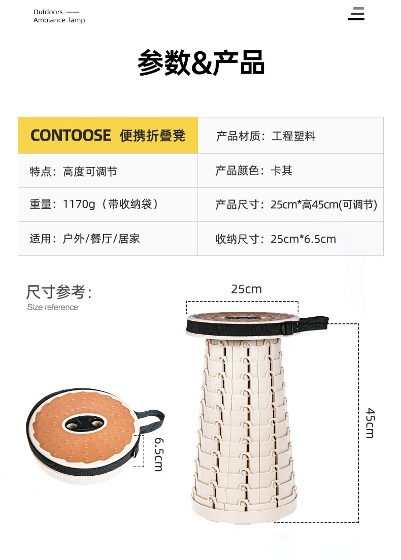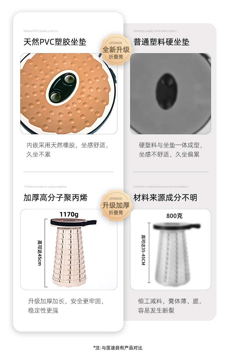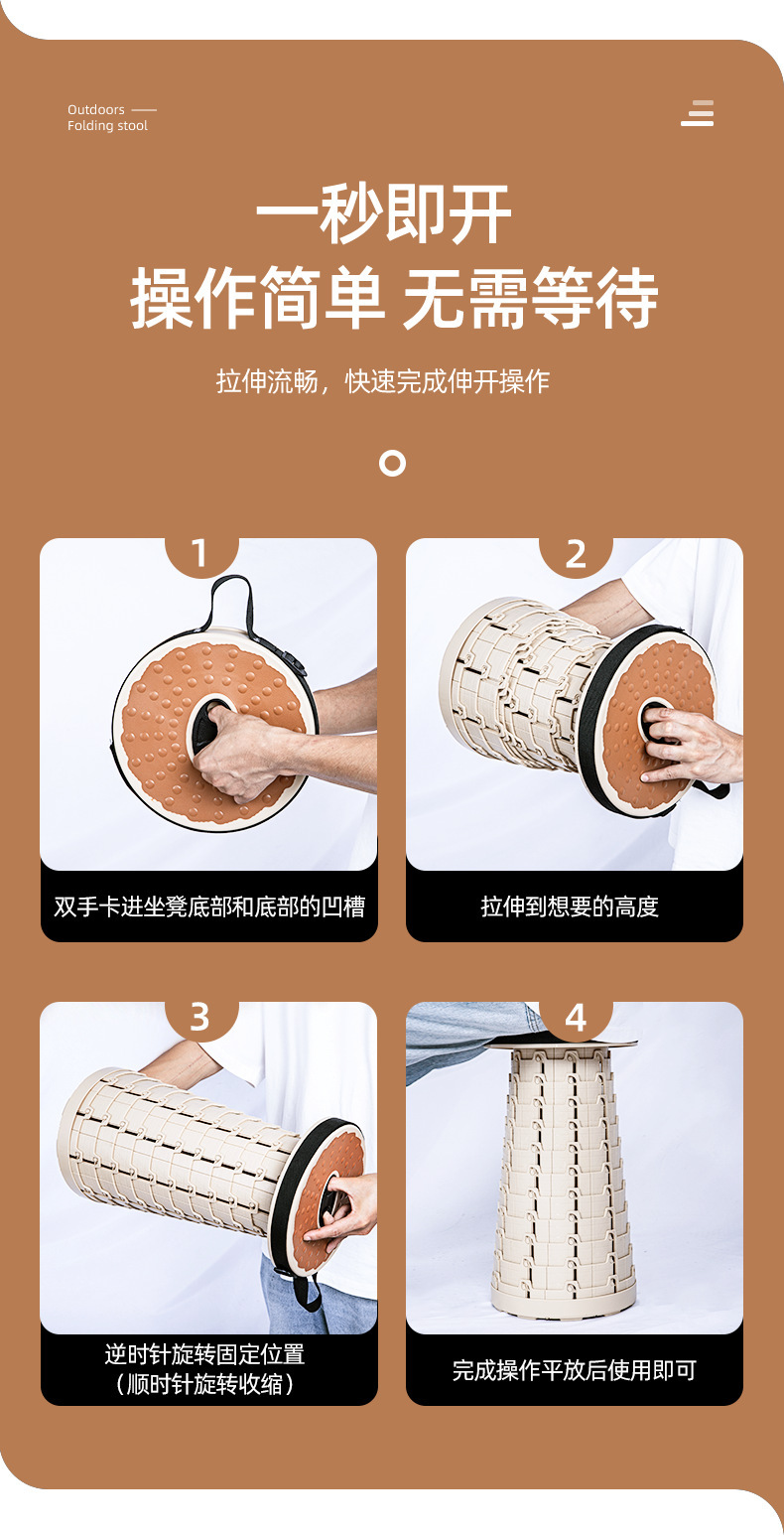 • 접이식 텔레스코픽 스툴 + 수납 가방 [가죽 소프트 고무 쿠션]]