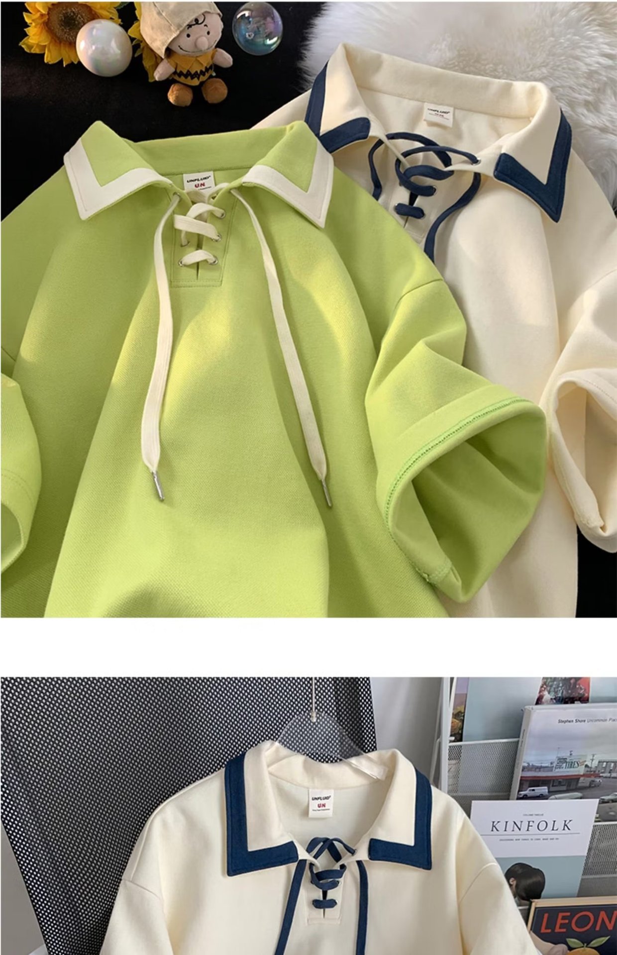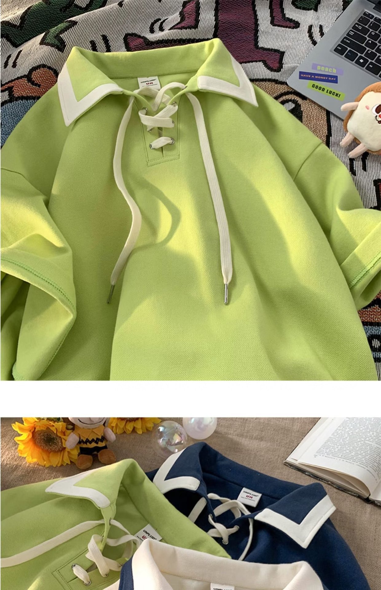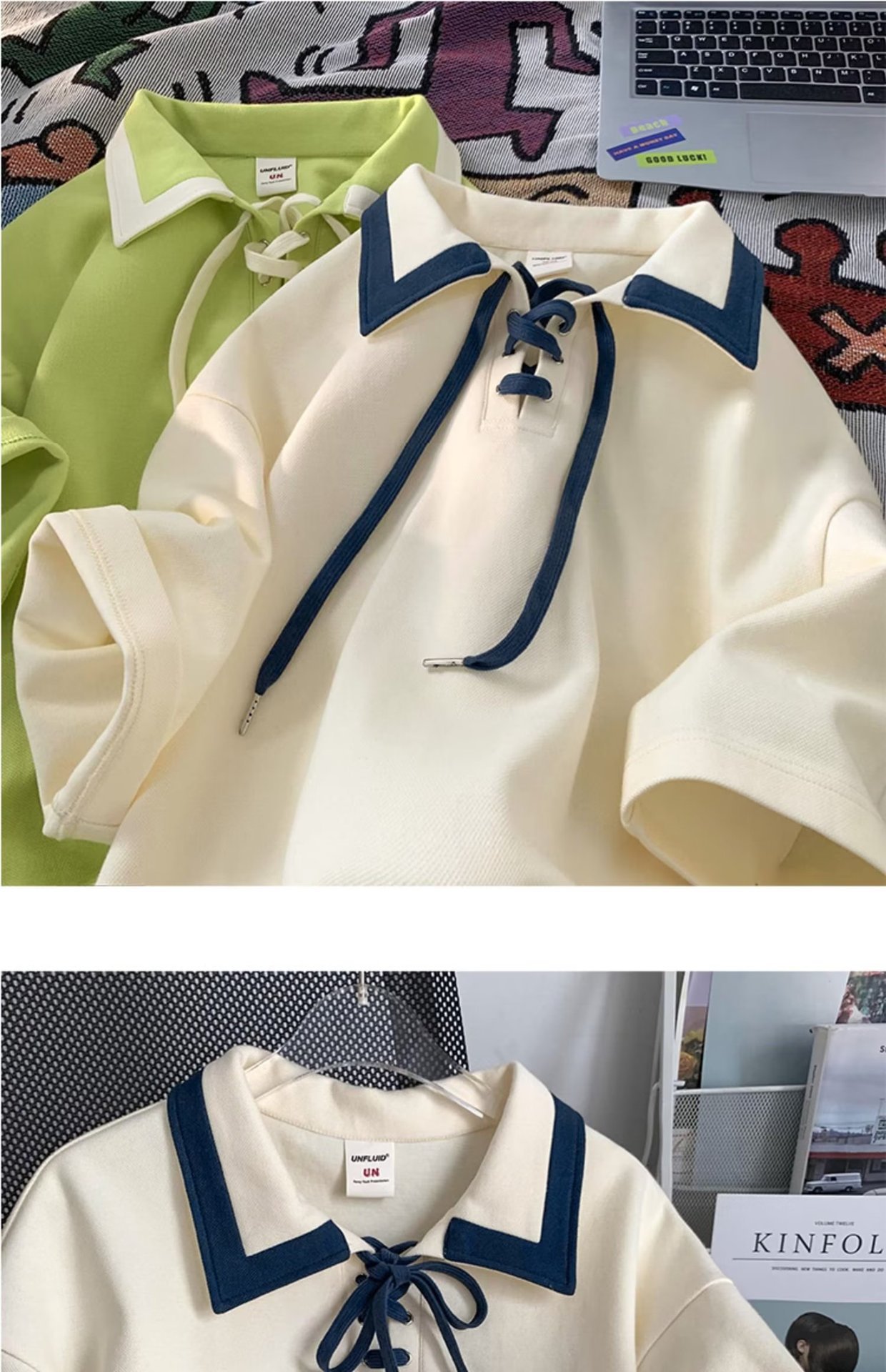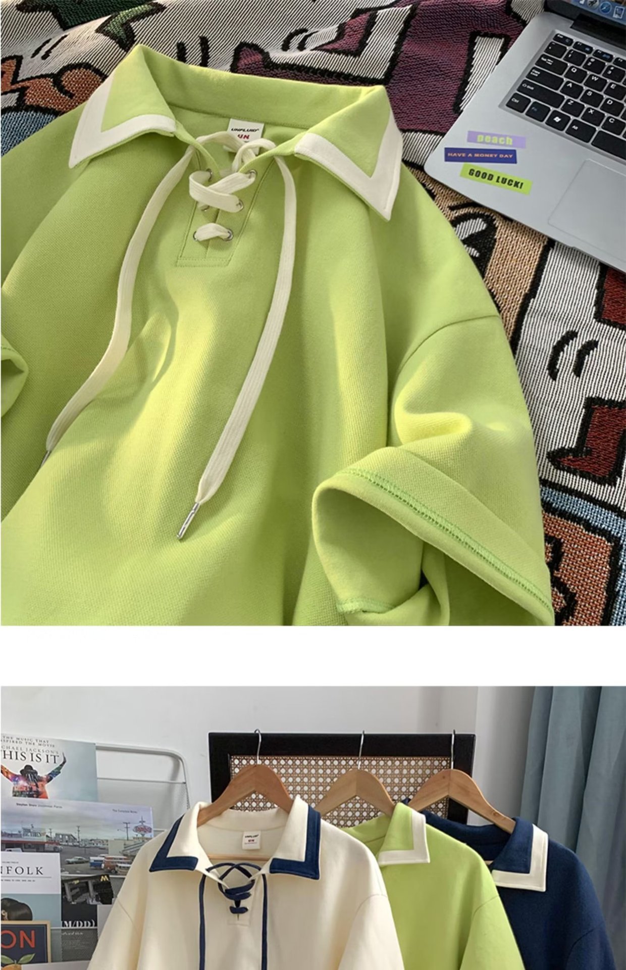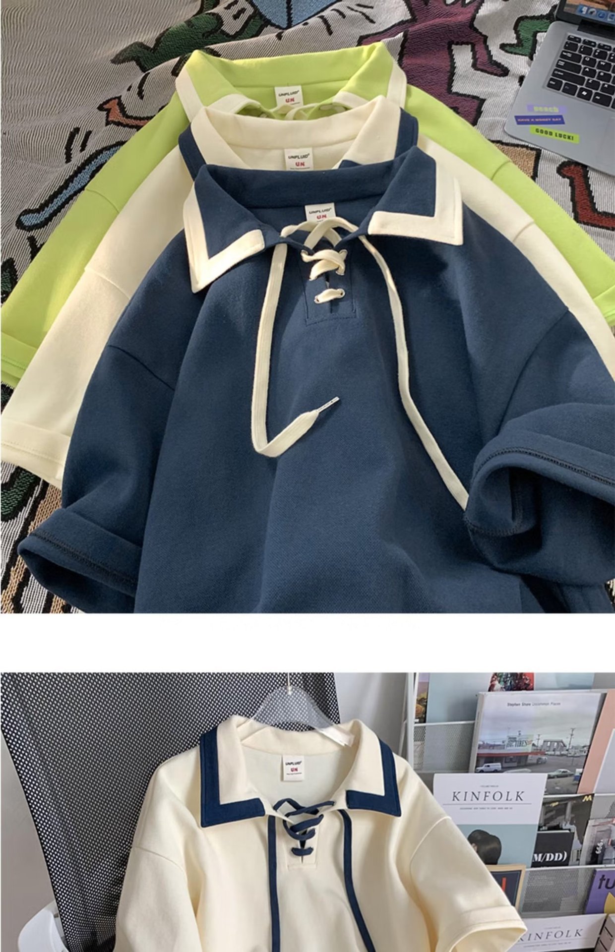 여름 트렌디 브랜드 일본 폴로 셔츠 남성용 T-소매 셔츠 신상품 남성용 반팔 루즈한 남성용 올매치 남여공용 탑스토어 가기