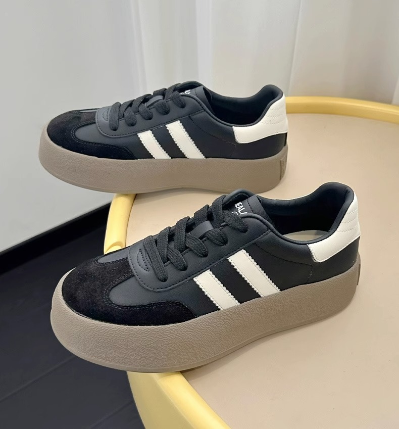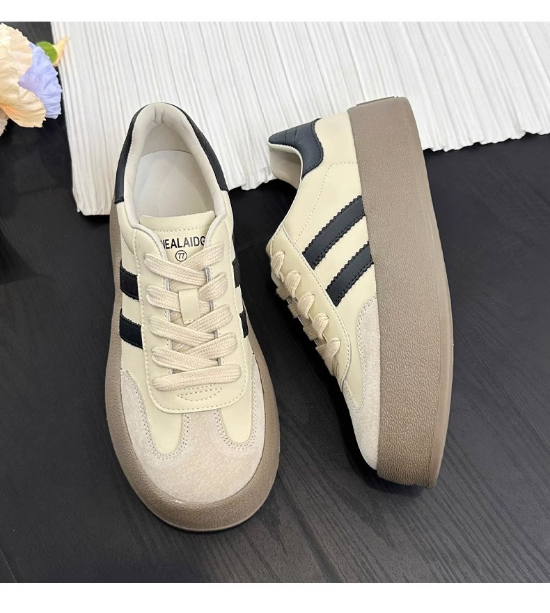 두꺼운 밑창 복고풍 독일 훈련 신발 2023 가을 새 가죽 부드러운 밑창 보드 신발 여성 조수 클래식 캐주얼 운동화