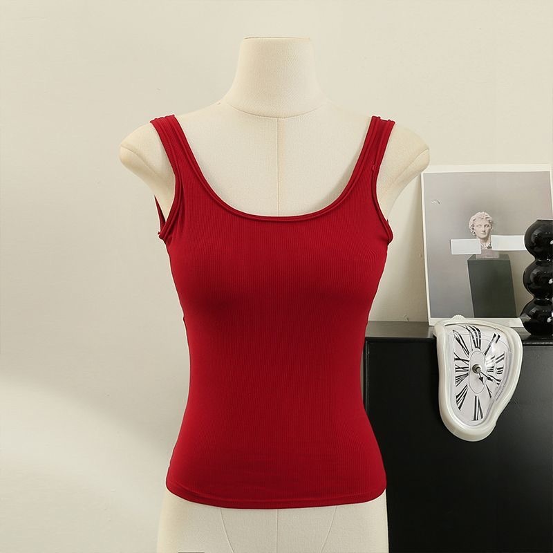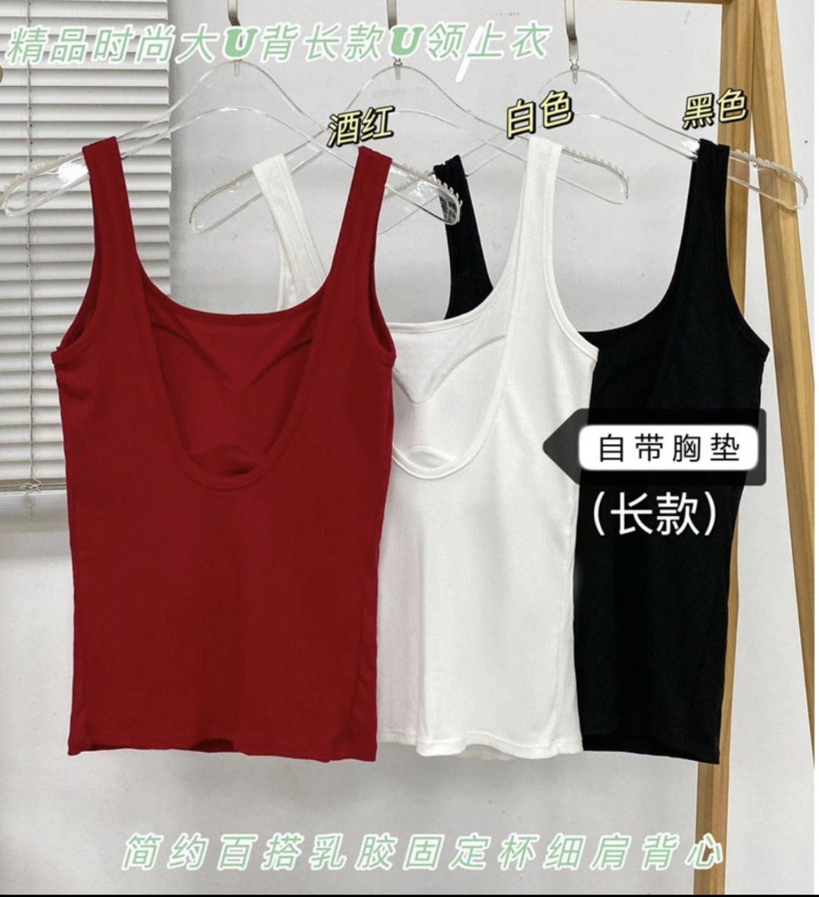 스파이스 걸스 롱 캐미솔 여성용 섹시 빅 U 백 슬림 핏 올 매치 슬리밍 아우터 웨어 아름다운 멜빵 가슴 패드 베이스 셔츠스토어 가기