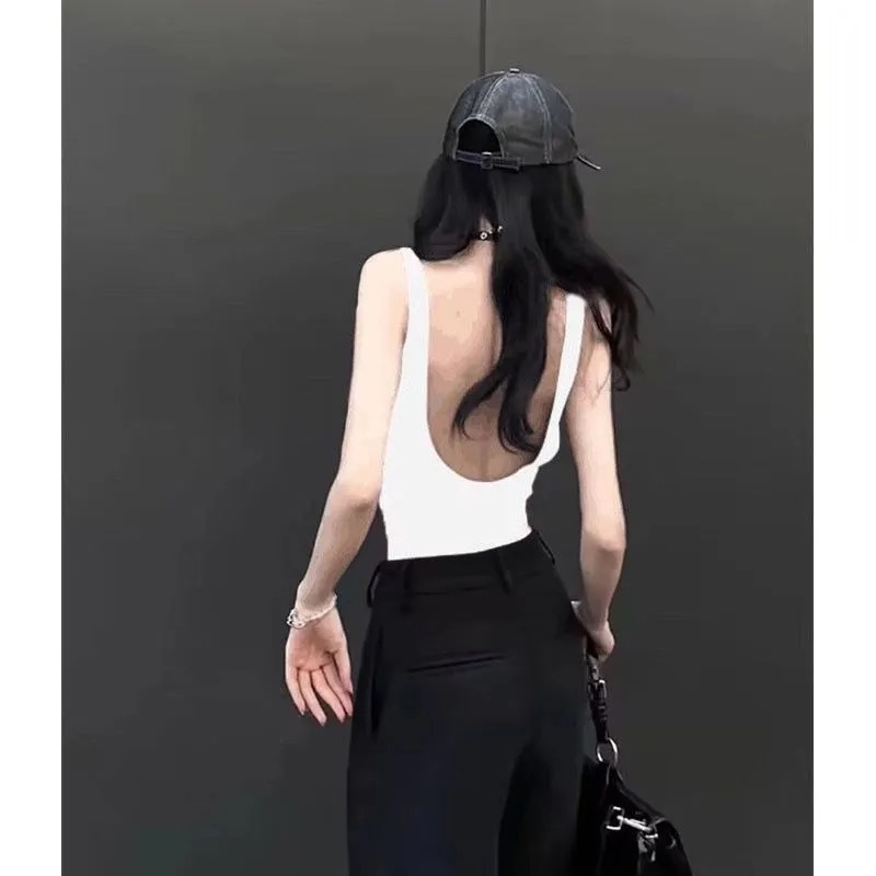 스파이스 걸스 롱 캐미솔 여성용 섹시 빅 U 백 슬림 핏 올 매치 슬리밍 아우터 웨어 아름다운 멜빵 가슴 패드 베이스 셔츠