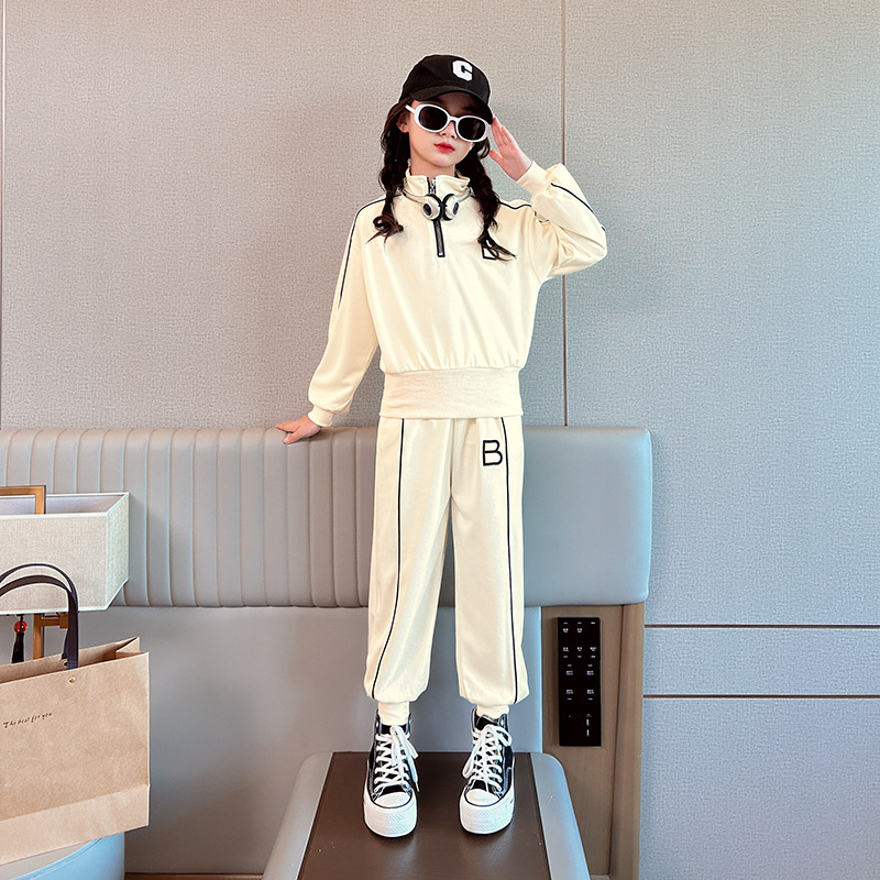 Zhongda 소녀의 유행 서양 스타일 캐주얼 운동복 세트 하프 지퍼 칼라 탑 레그 바지 스포츠 투피스 세트스토어 가기