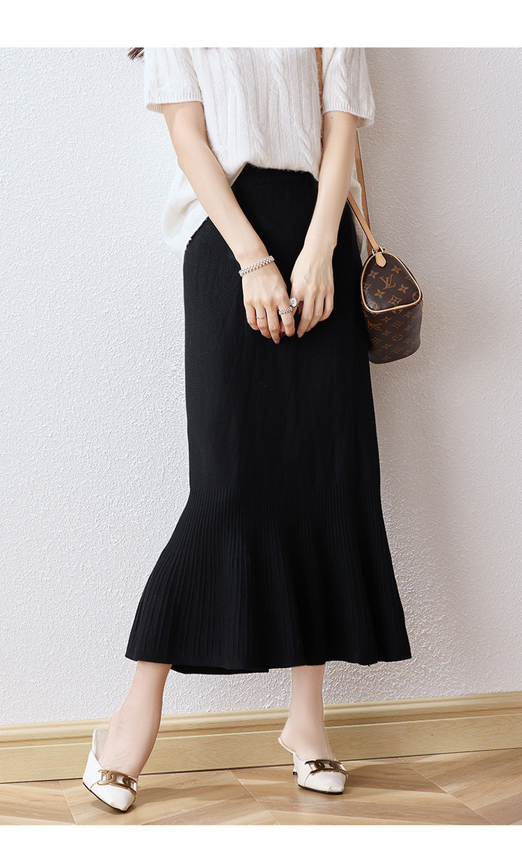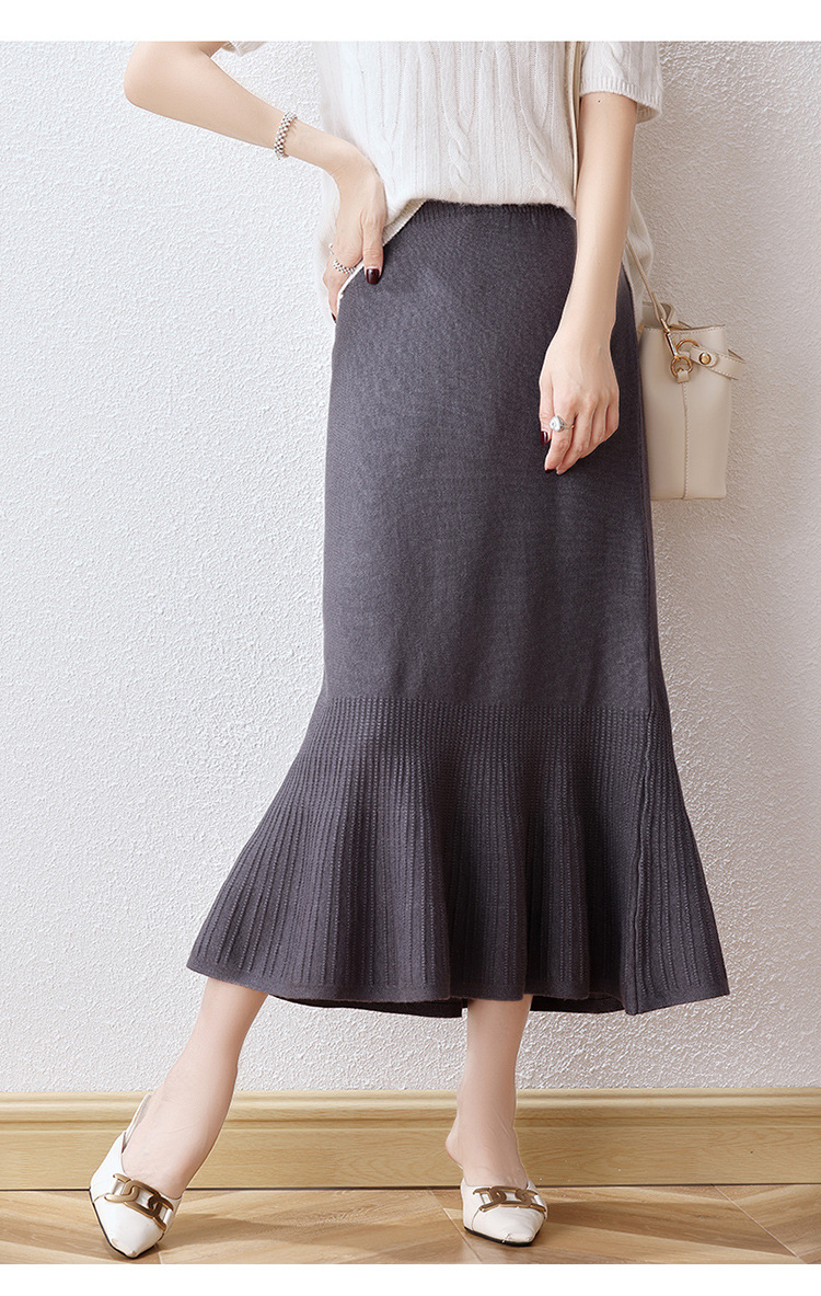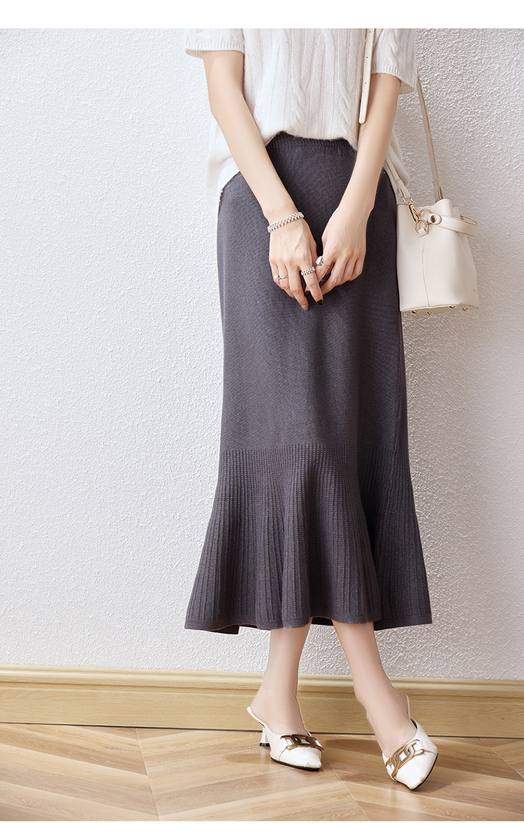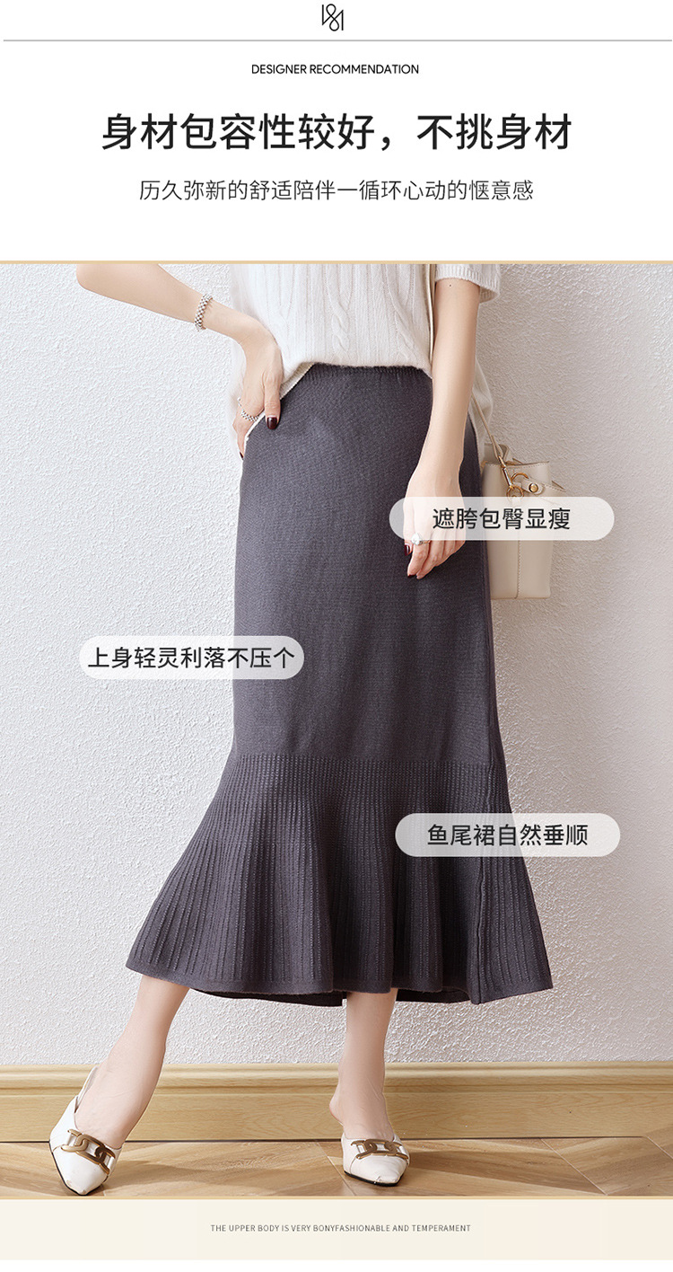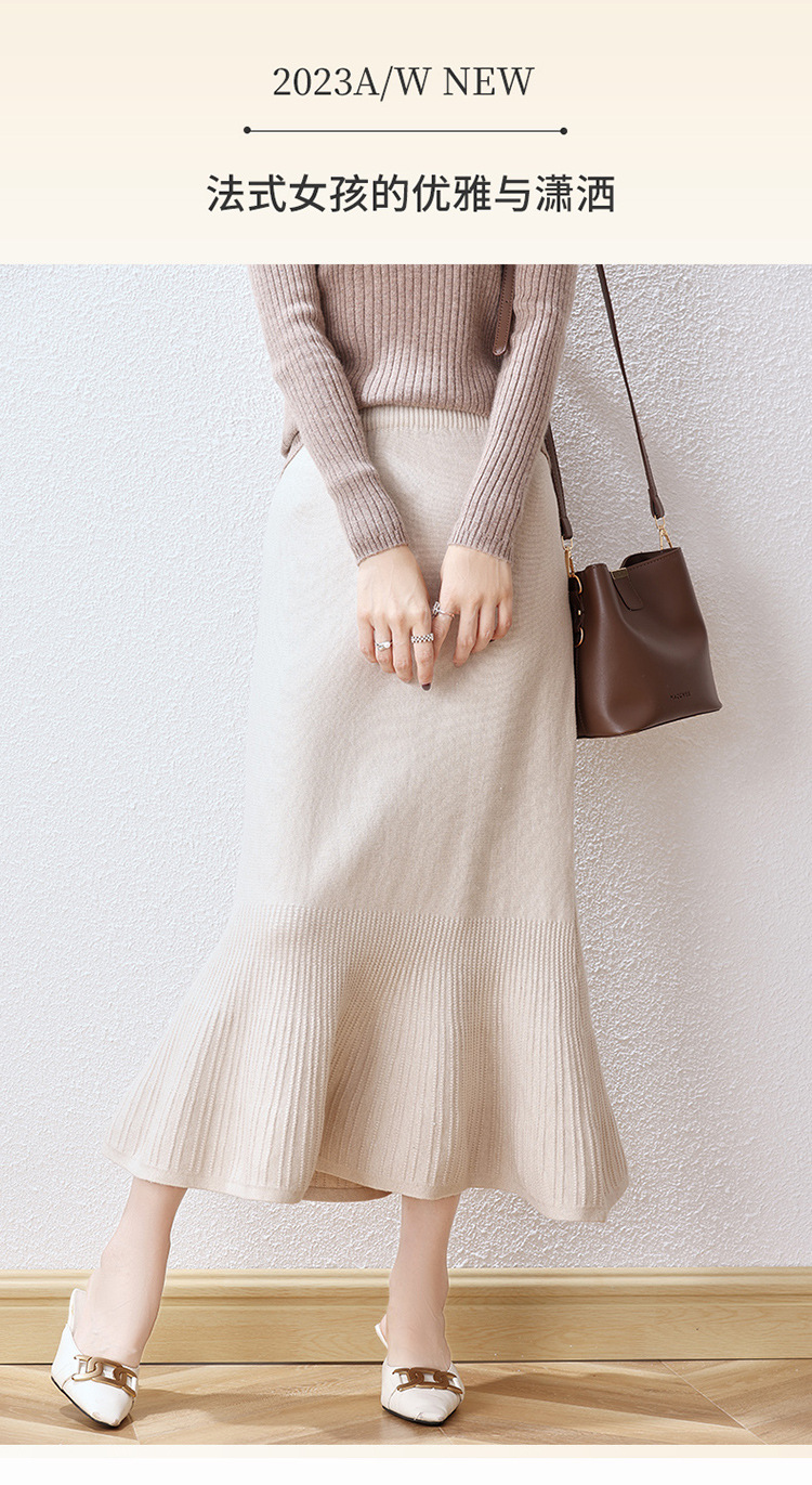 우아한 프랑스 스타일 허리 피쉬 테일 스커트 여성용 2023 가을과 겨울 고급 니트 스커트 우아한 힙 A 라인 스커트 우산 스커트스토어 가기