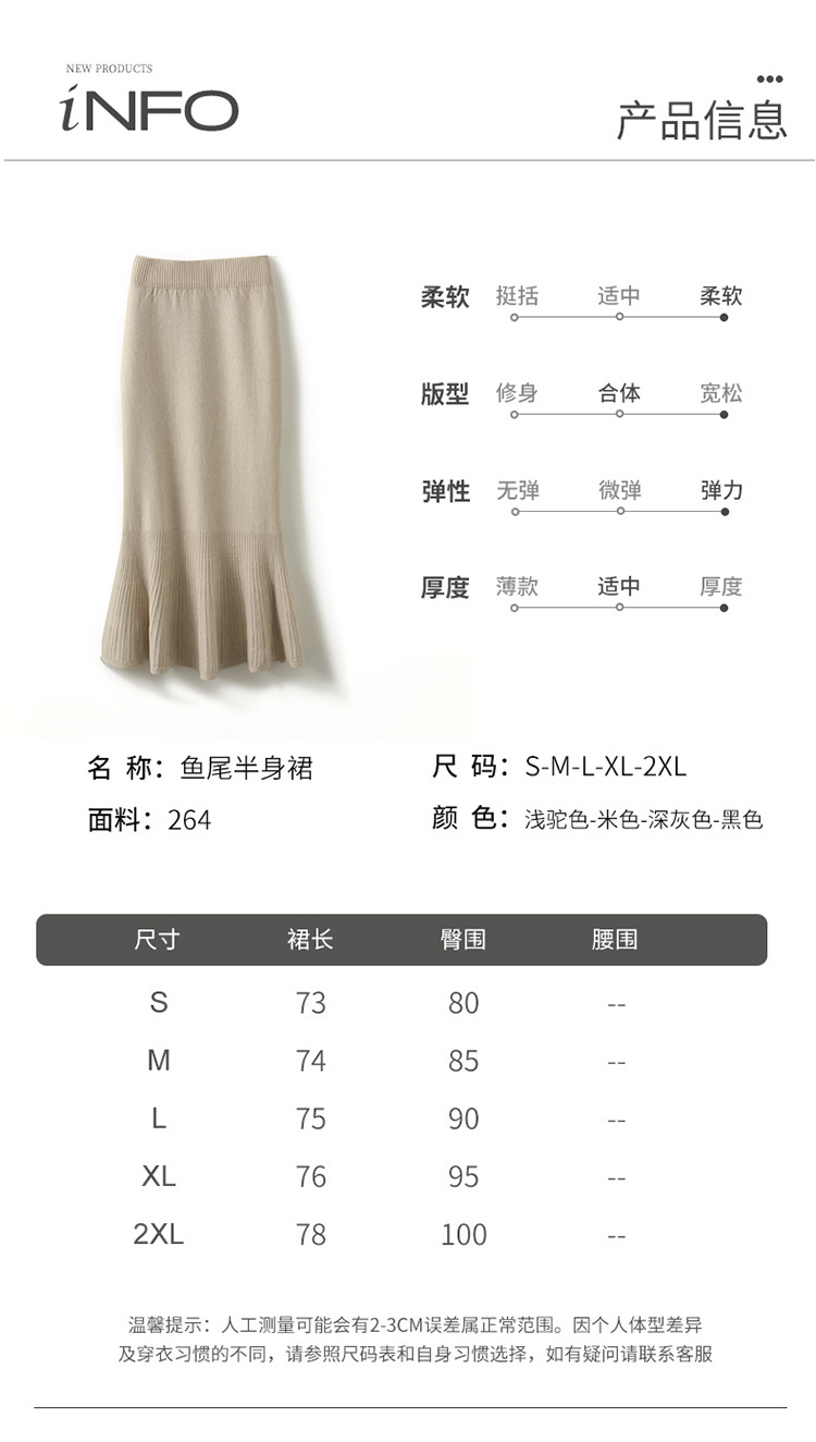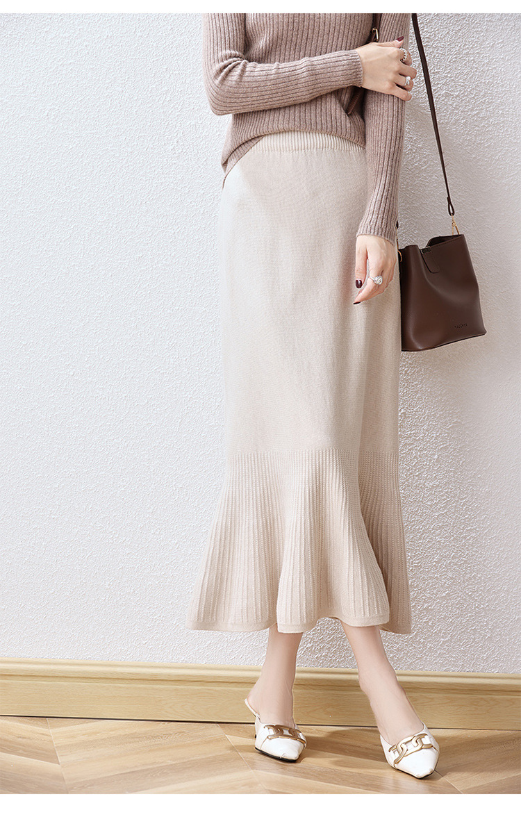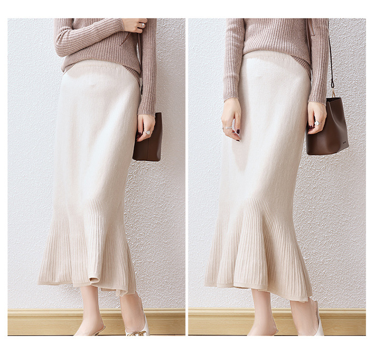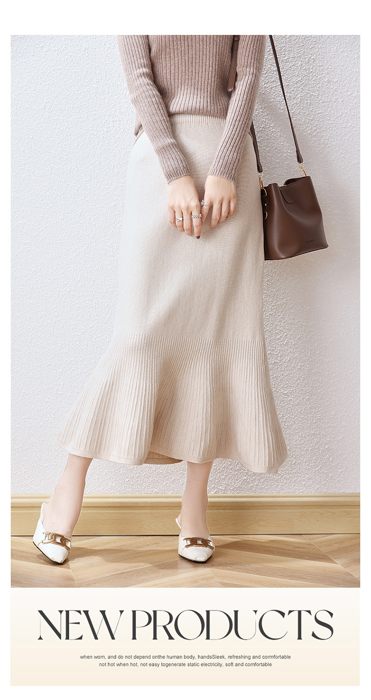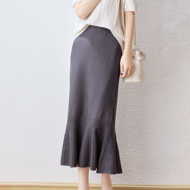 우아한 프랑스 스타일 허리 피쉬 테일 스커트 여성용 2023 가을과 겨울 고급 니트 스커트 우아한 힙 A 라인 스커트 우산 스커트스토어 가기