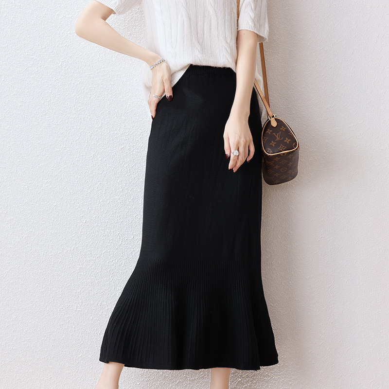 우아한 프랑스 스타일 허리 피쉬 테일 스커트 여성용 2023 가을과 겨울 고급 니트 스커트 우아한 힙 A 라인 스커트 우산 스커트
