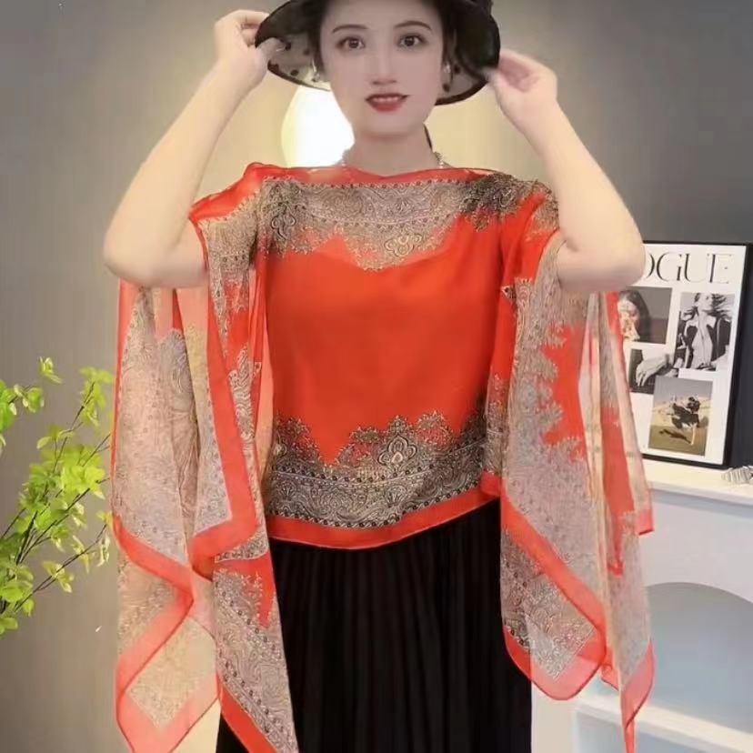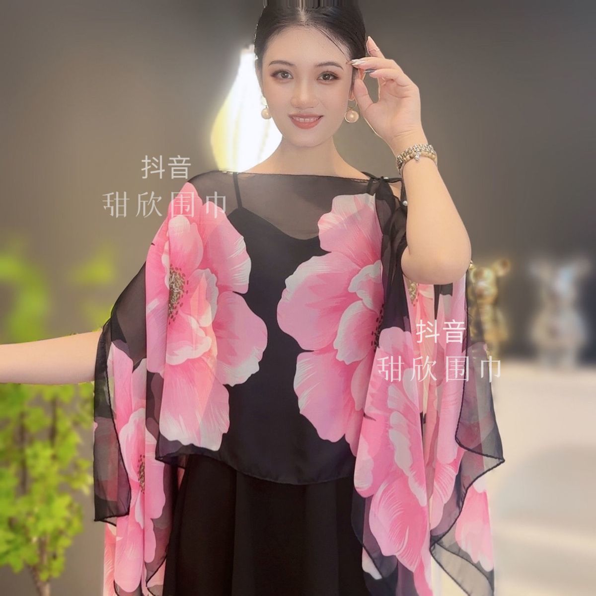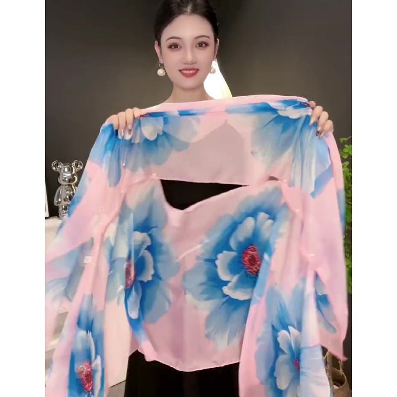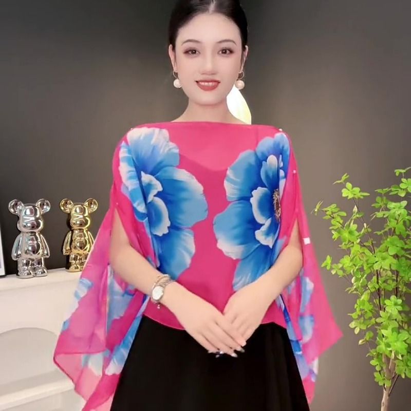 [레트로 숄] 여름 밝은 색 큰 꽃 패션 펄 숄 선 스크린 셔츠 기질 우아한 여행 필수