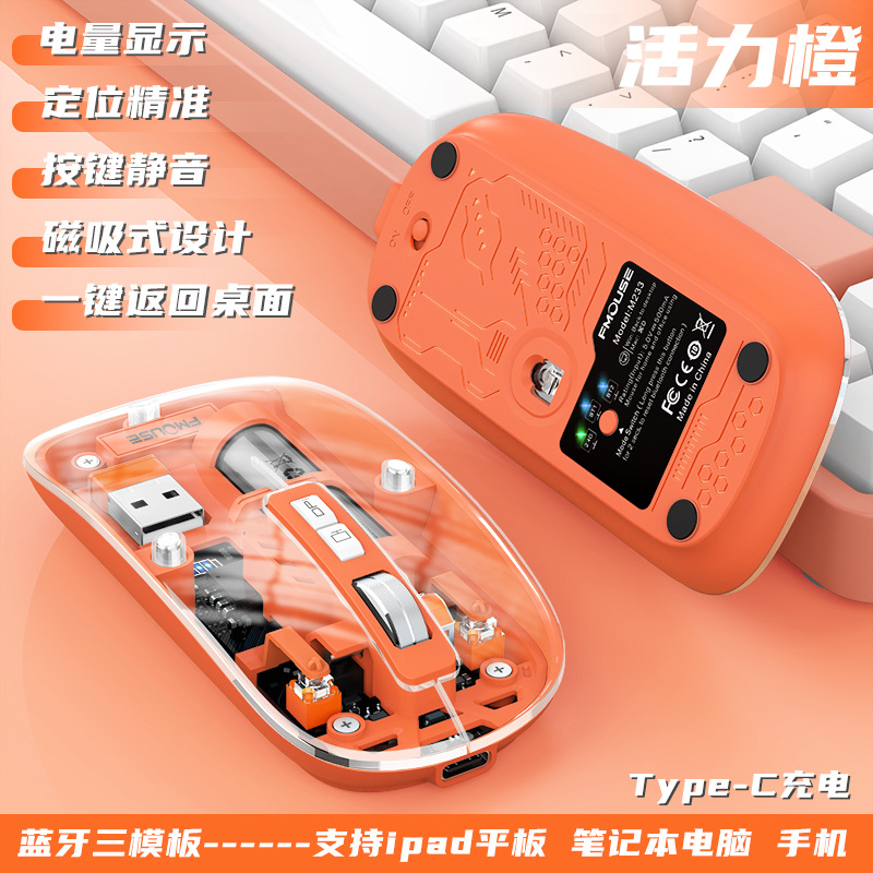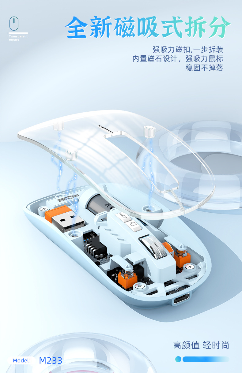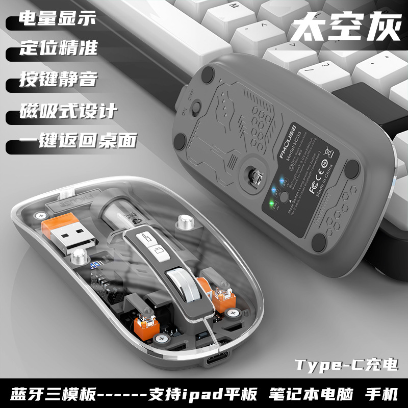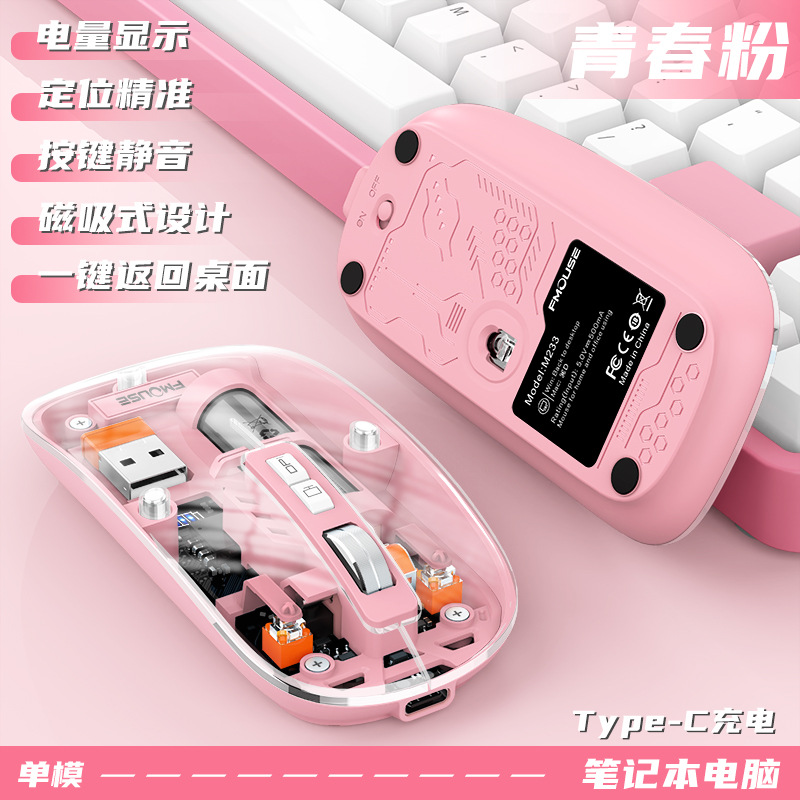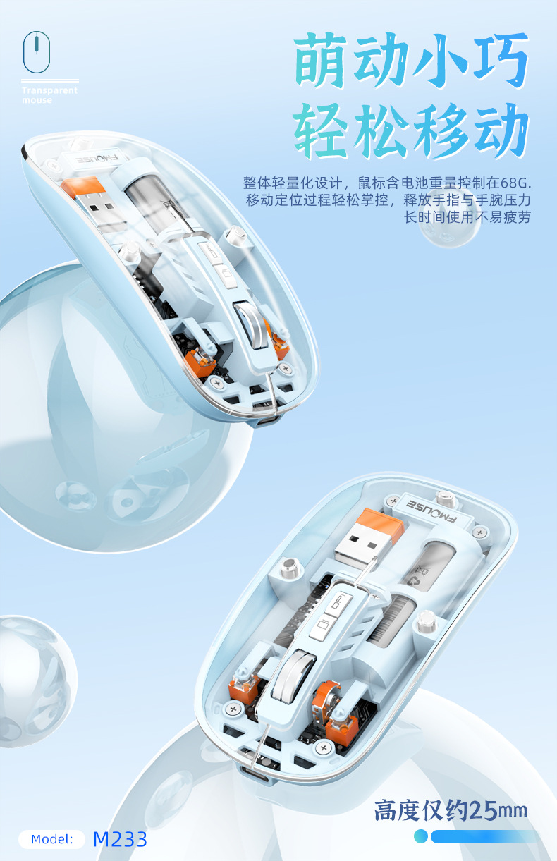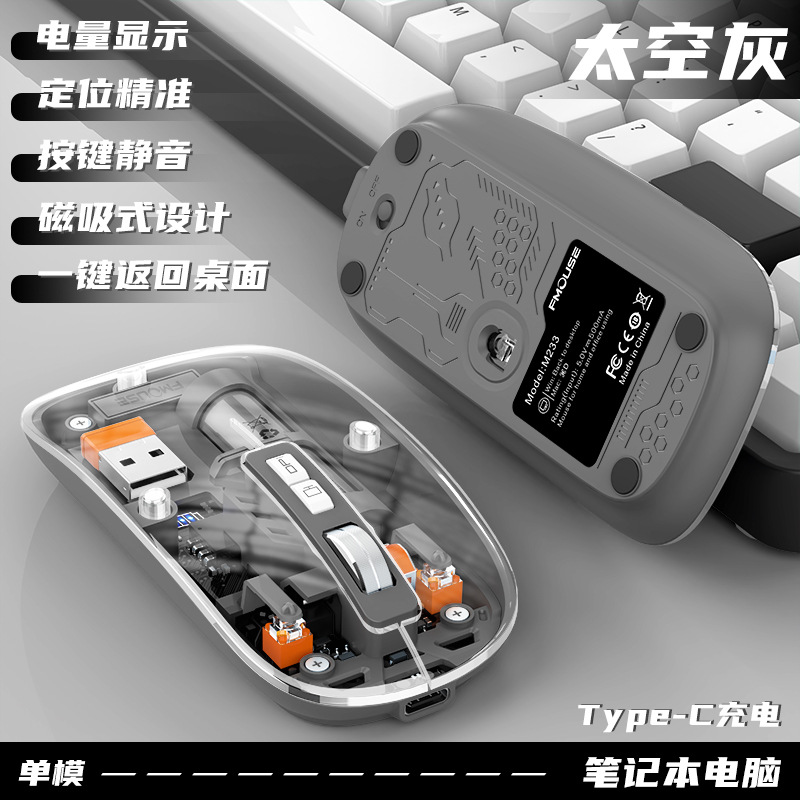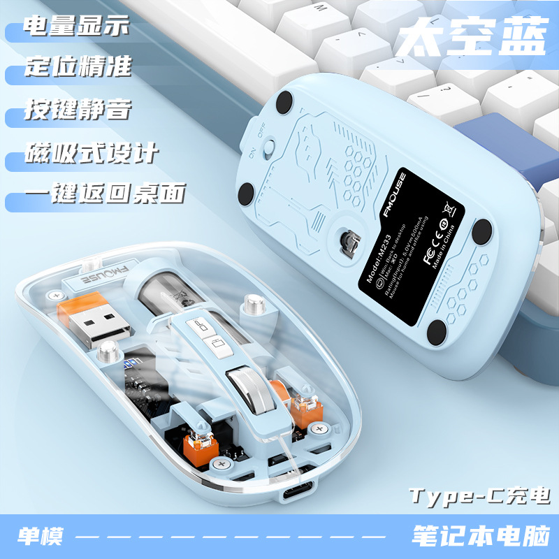 투명 무선 마우스 투명하고 가볍고 휴대성이 뛰어난 데스크탑 노트북 사무실 가정용 마우스
