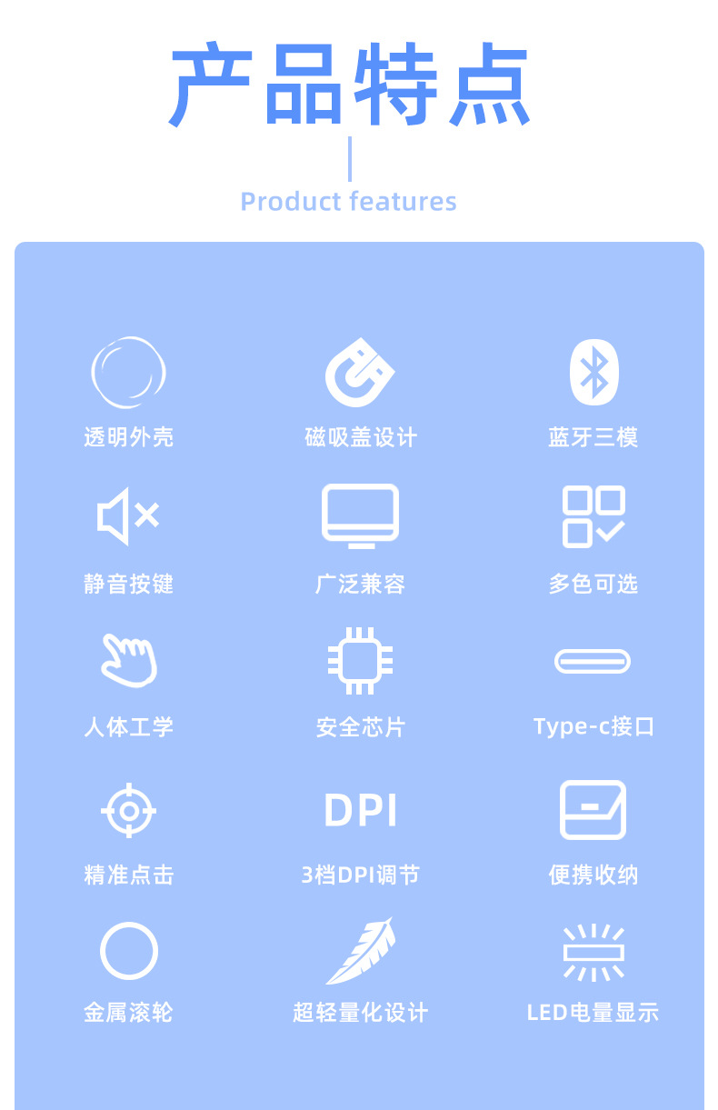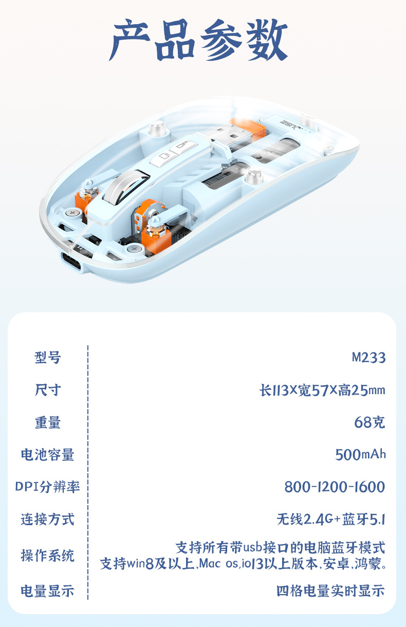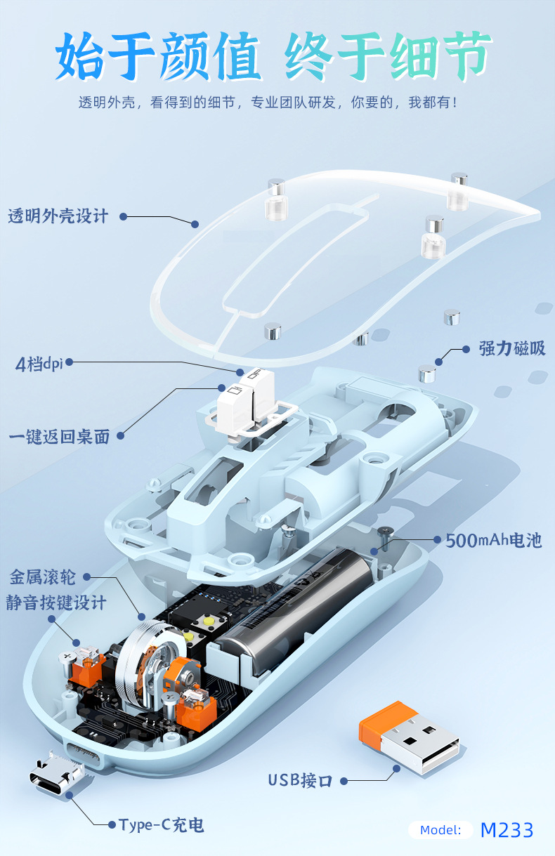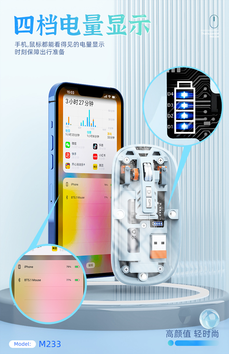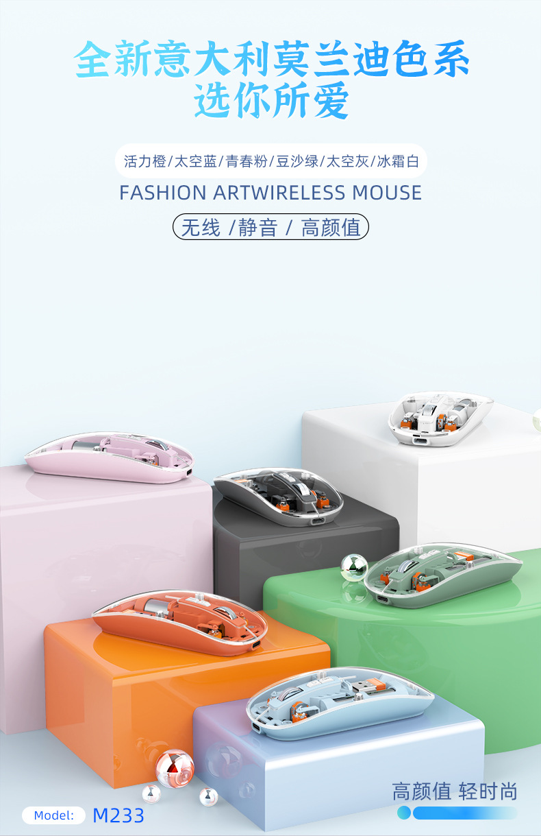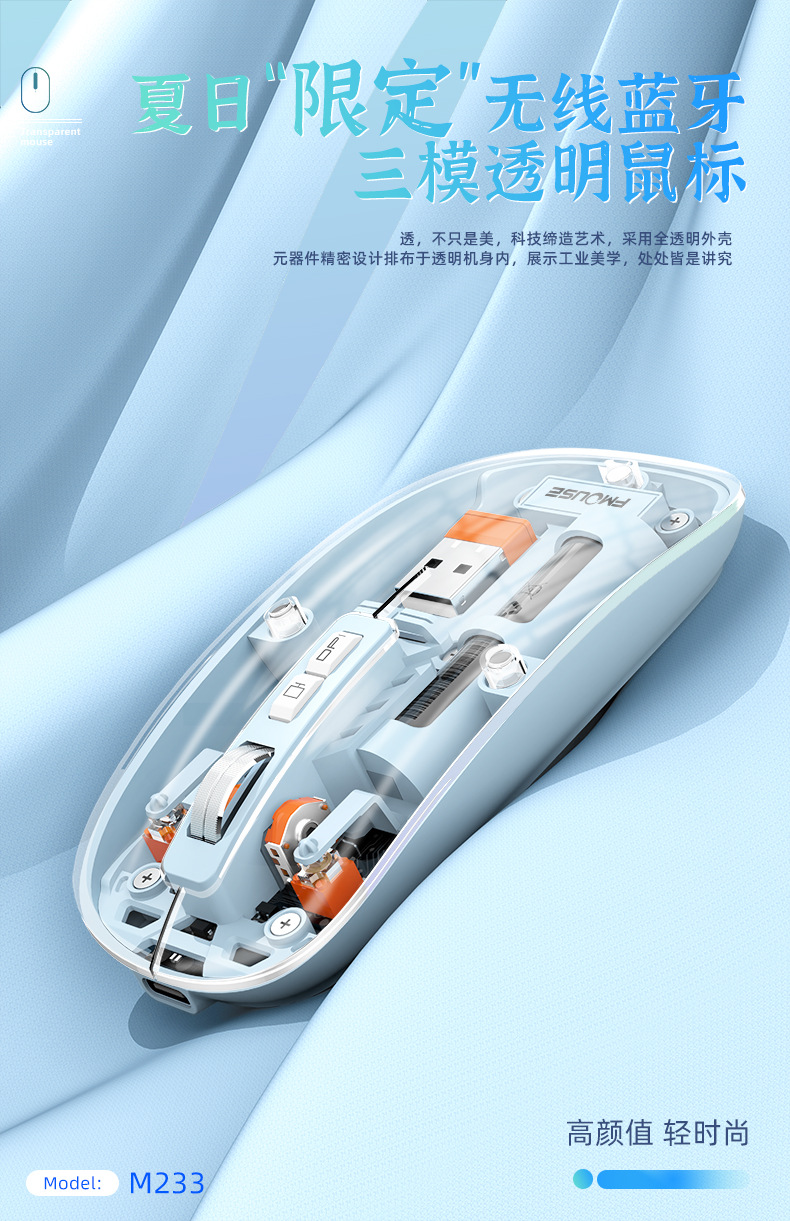 투명 무선 마우스 투명하고 가볍고 휴대성이 뛰어난 데스크탑 노트북 사무실 가정용 마우스