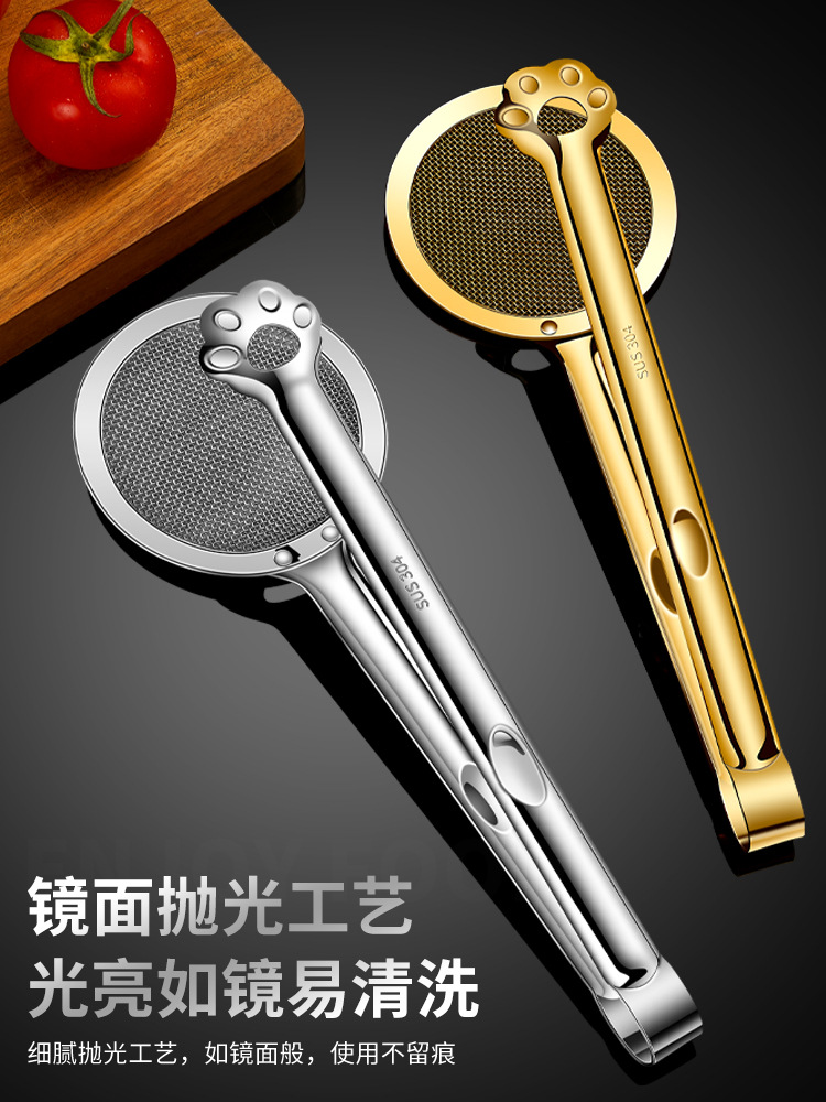 304 스테인레스 스틸 소쿠리 가정용 필터 스크린 주방 스테이크 오일 클립 프라이팬 삽 2 대 1 오일 스트레이너 스푼스토어 가기