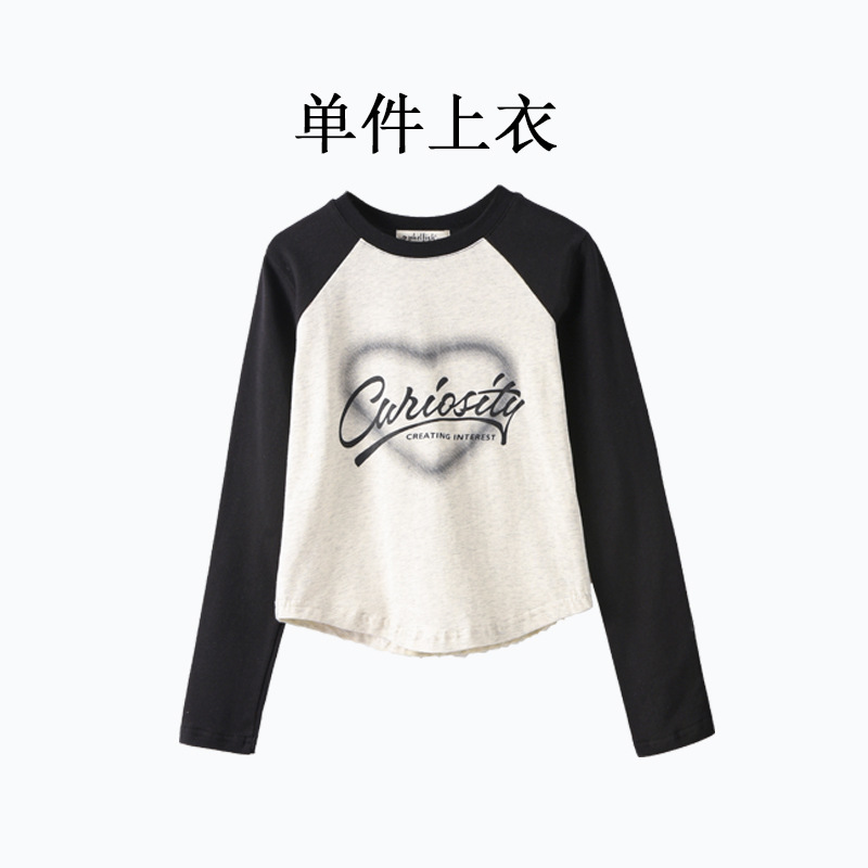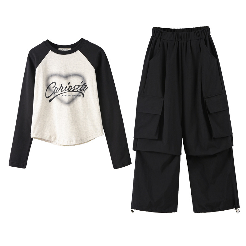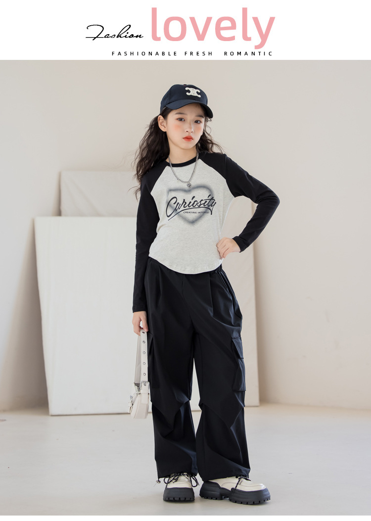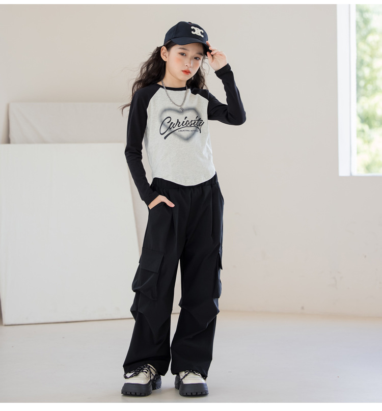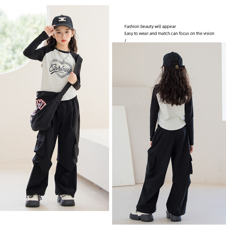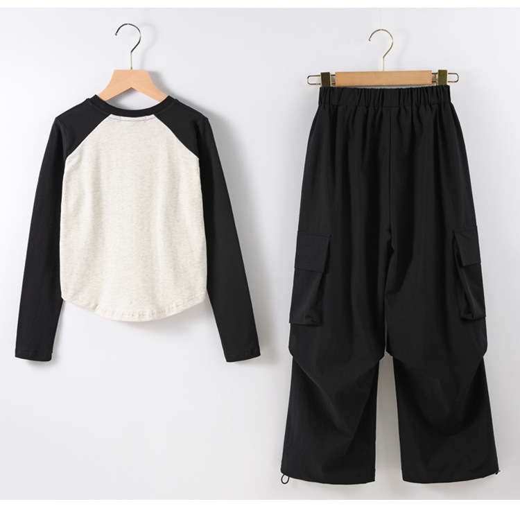 여아 작업복 정장 2025 봄 긴팔 티셔츠 + 와이드 팬츠 투피스 세트 아우터 레이어링 셔츠 큰 아동복