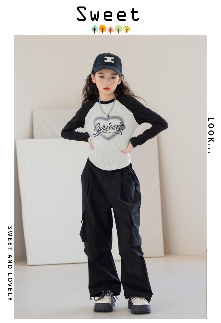 여아 작업복 정장 2025 봄 긴팔 티셔츠 + 와이드 팬츠 투피스 세트 아우터 레이어링 셔츠 큰 아동복스토어 가기