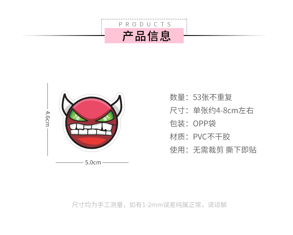 50 새로운 기하학 대시 기하학 스프린트 스티커 오토바이 기타 트렁크 방수 스티커