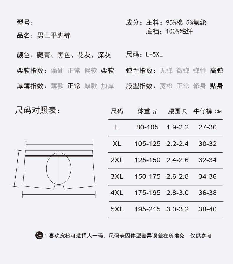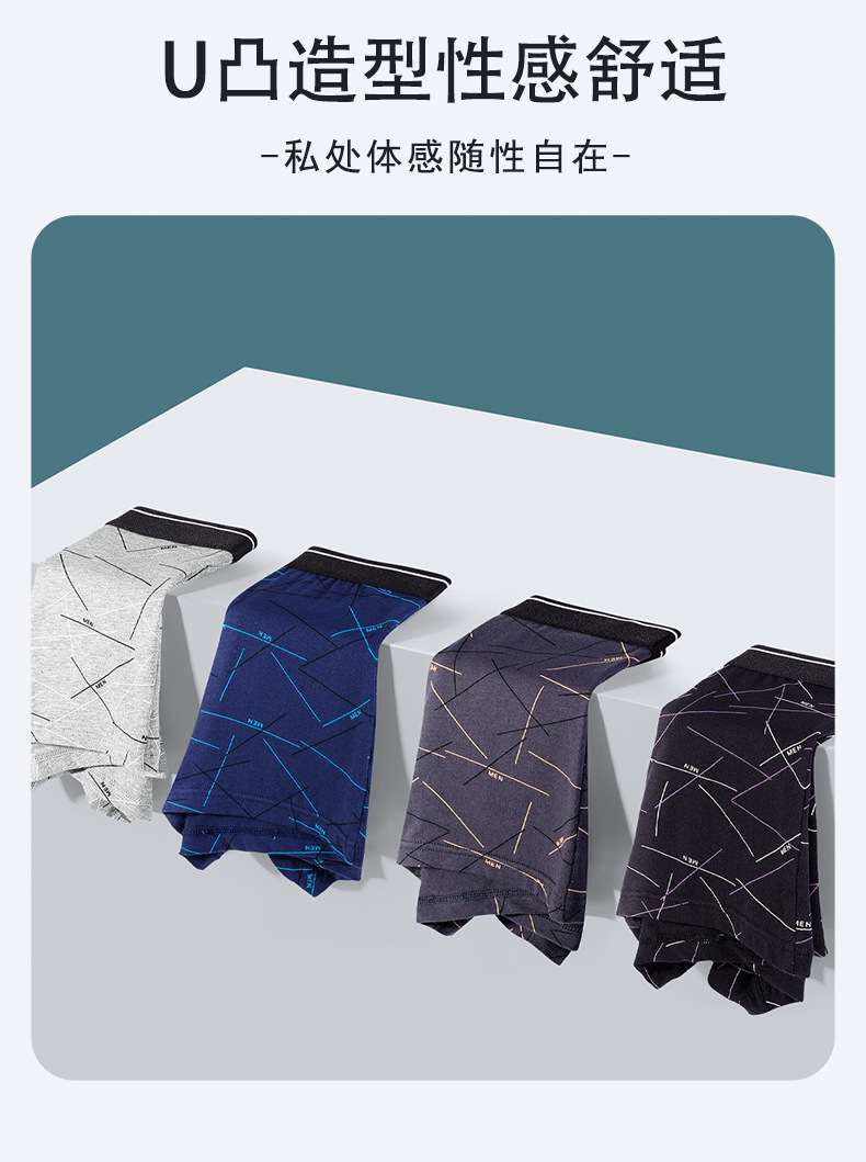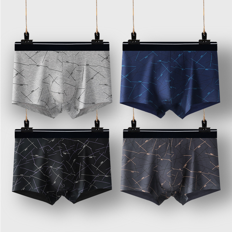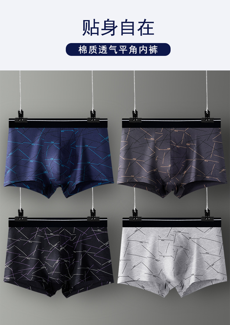 남성용 순면 속옷, 남성용 사각팬티, 남성용 라지 사이즈 사각팬츠, 순면 프린트, 트렌디하고 통기성 좋고 편안함