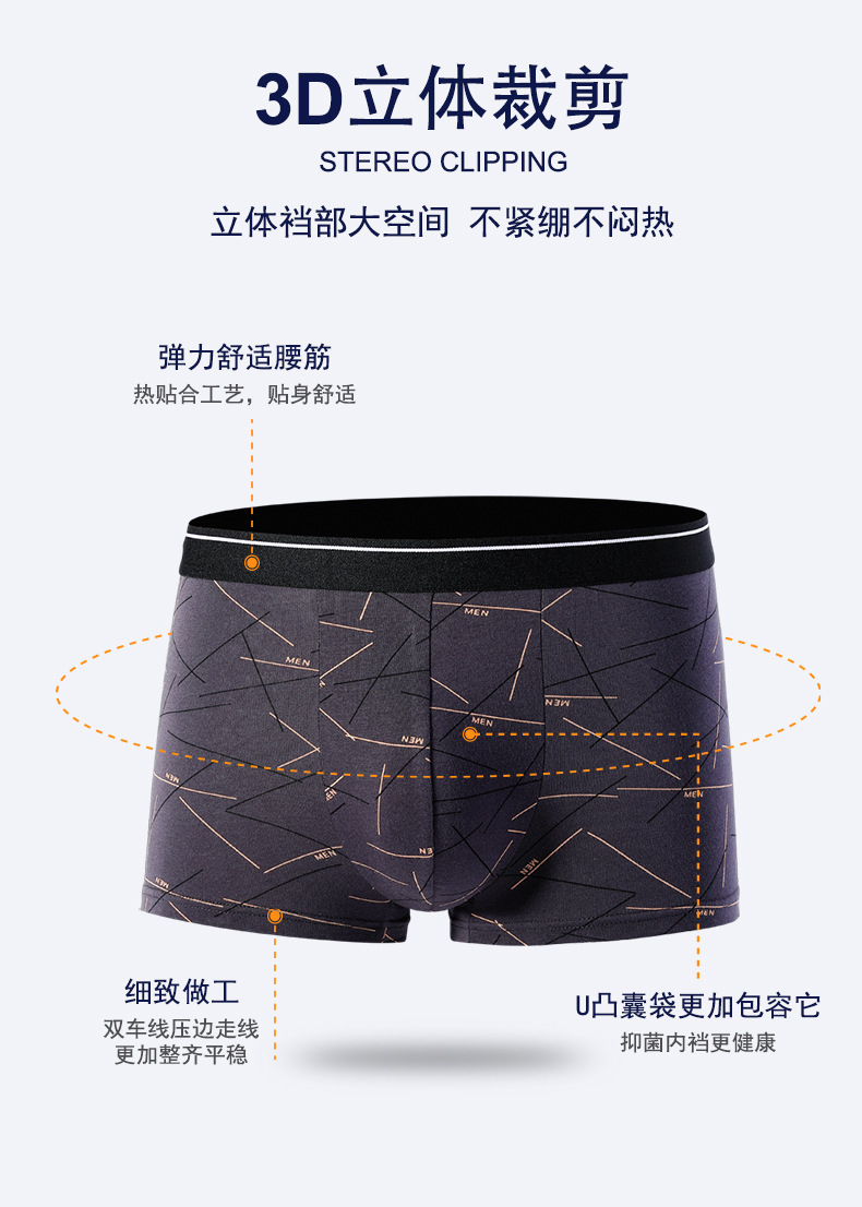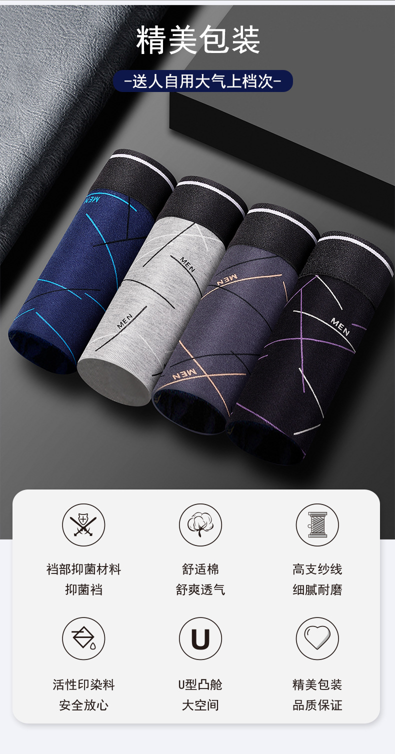 남성용 순면 속옷, 남성용 사각팬티, 남성용 라지 사이즈 사각팬츠, 순면 프린트, 트렌디하고 통기성 좋고 편안함스토어 가기