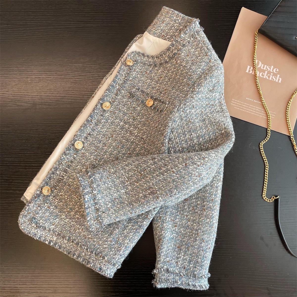 2024 봄 가을 패션의 고급스러운 느낌! 헤비듀티 트위드 울로 짠 루즈한 여성스러운 스타일의 작은 향기 재킷스토어 가기