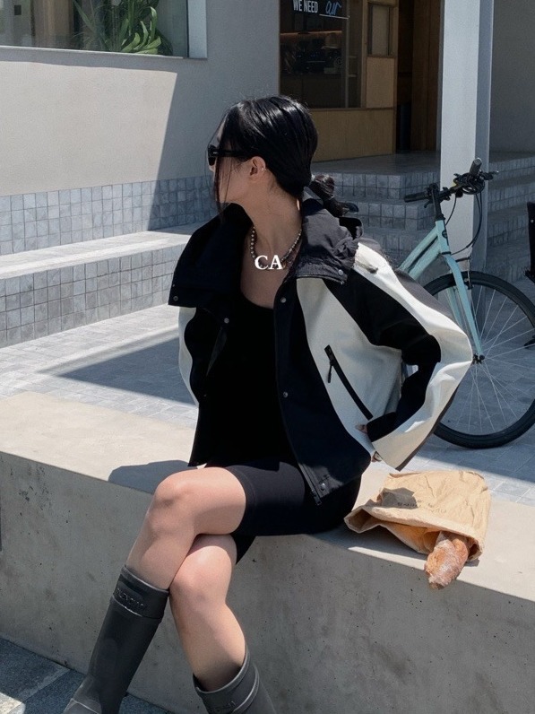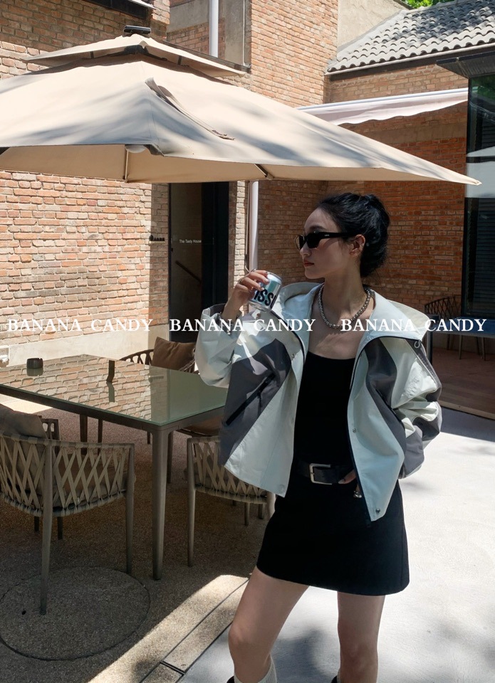 2023 가을 새로운 대비 컬러 스티칭 폭행 의류 ~ 느슨한 재킷 짧은 윈드 브레이커 코트 작은 여성 의류 8D0124