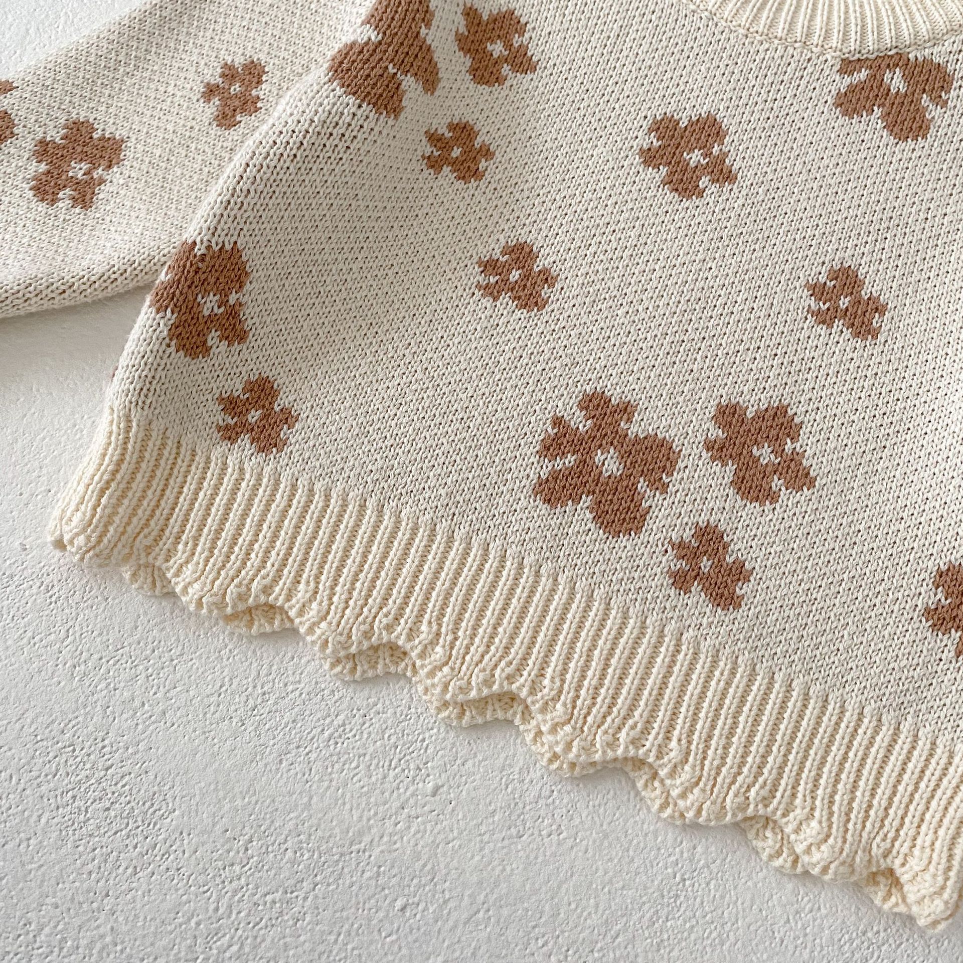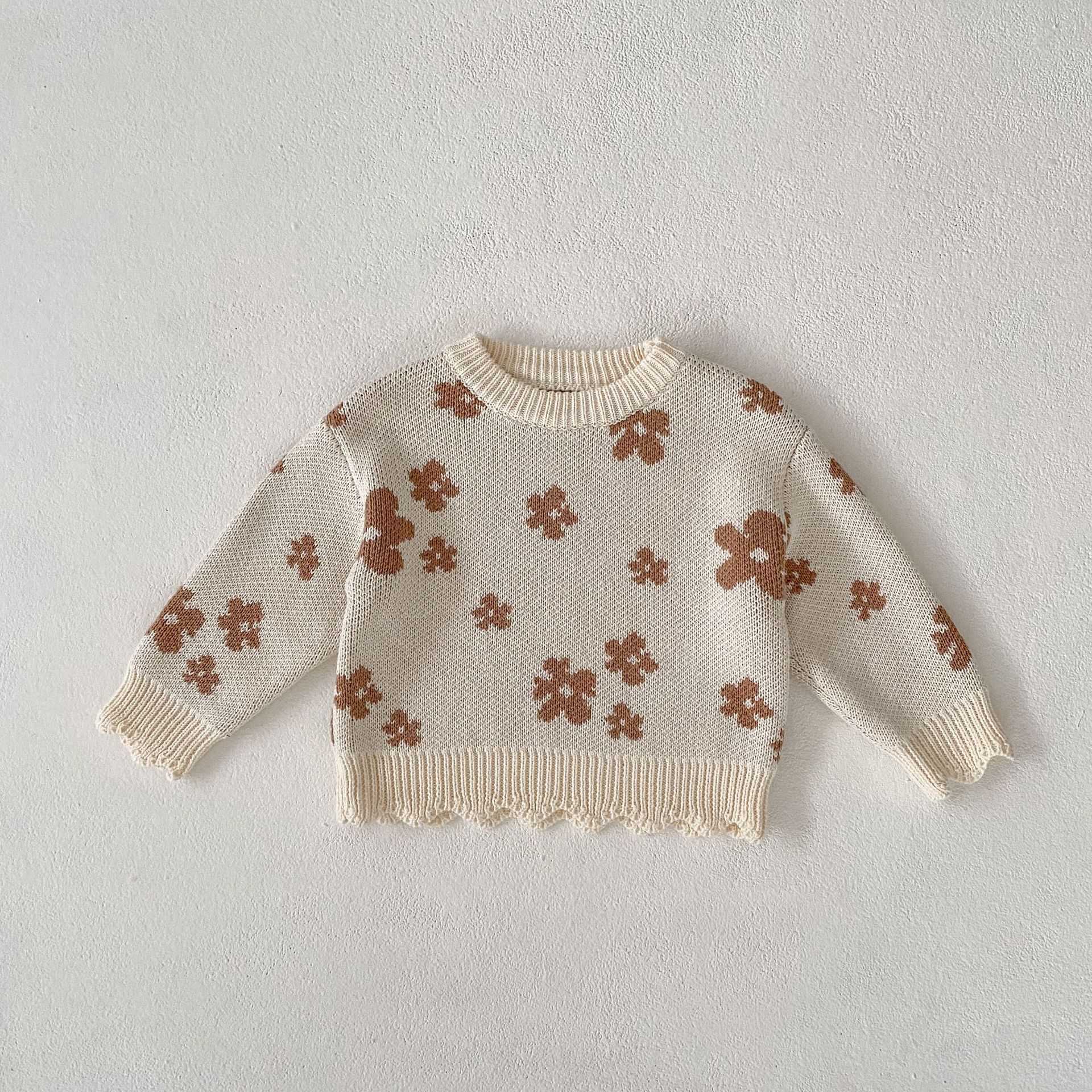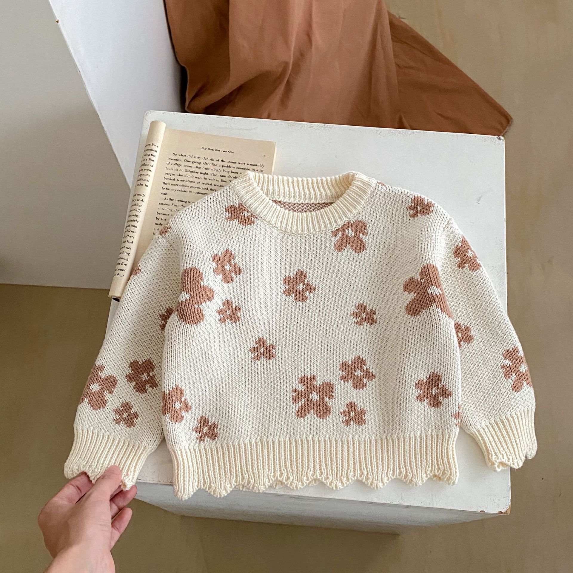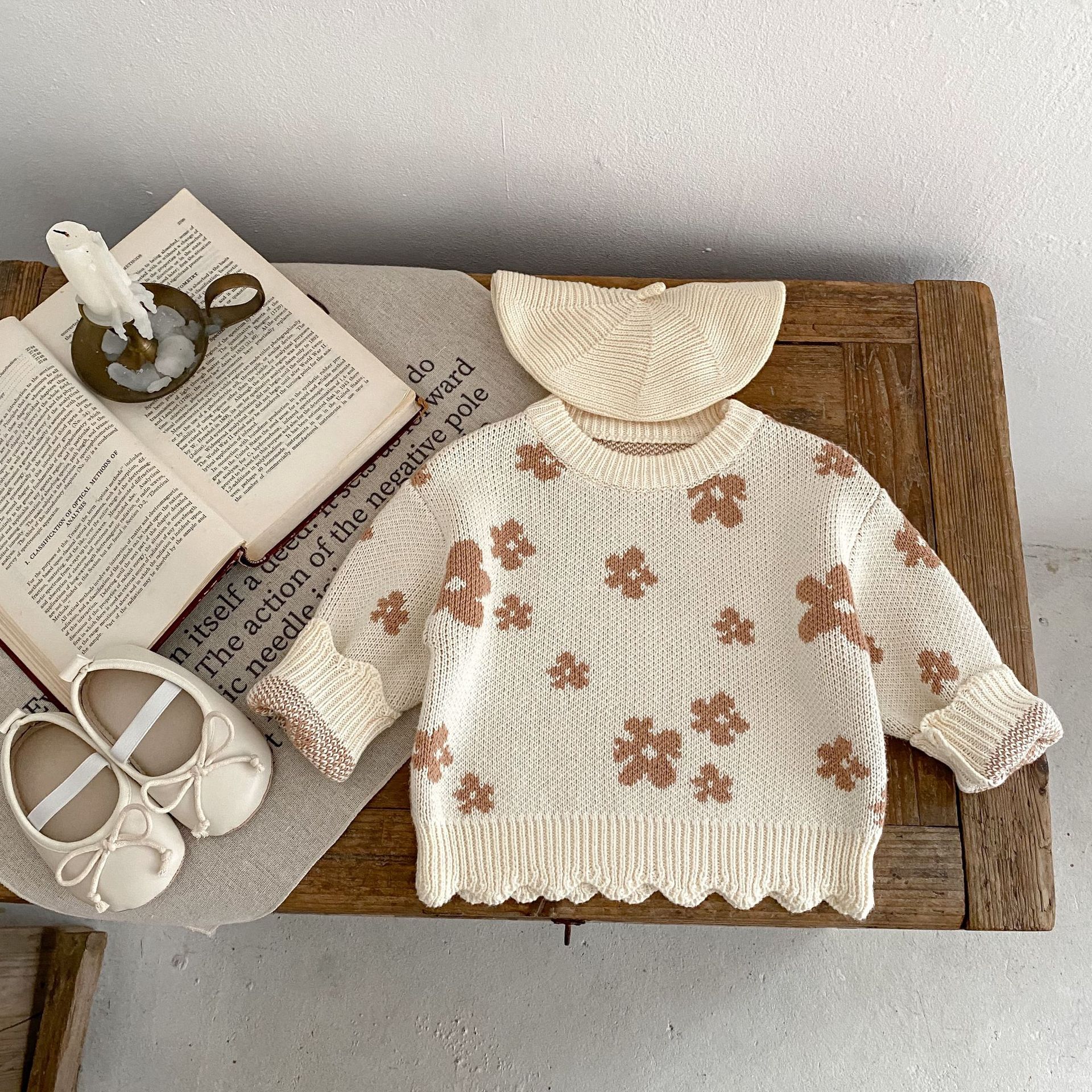 Ins 2025 가을 의류 유아 및 어린이 0-3 세 아기 소녀 꽃 자카드 풀오버 스웨터 다목적 탑스토어 가기