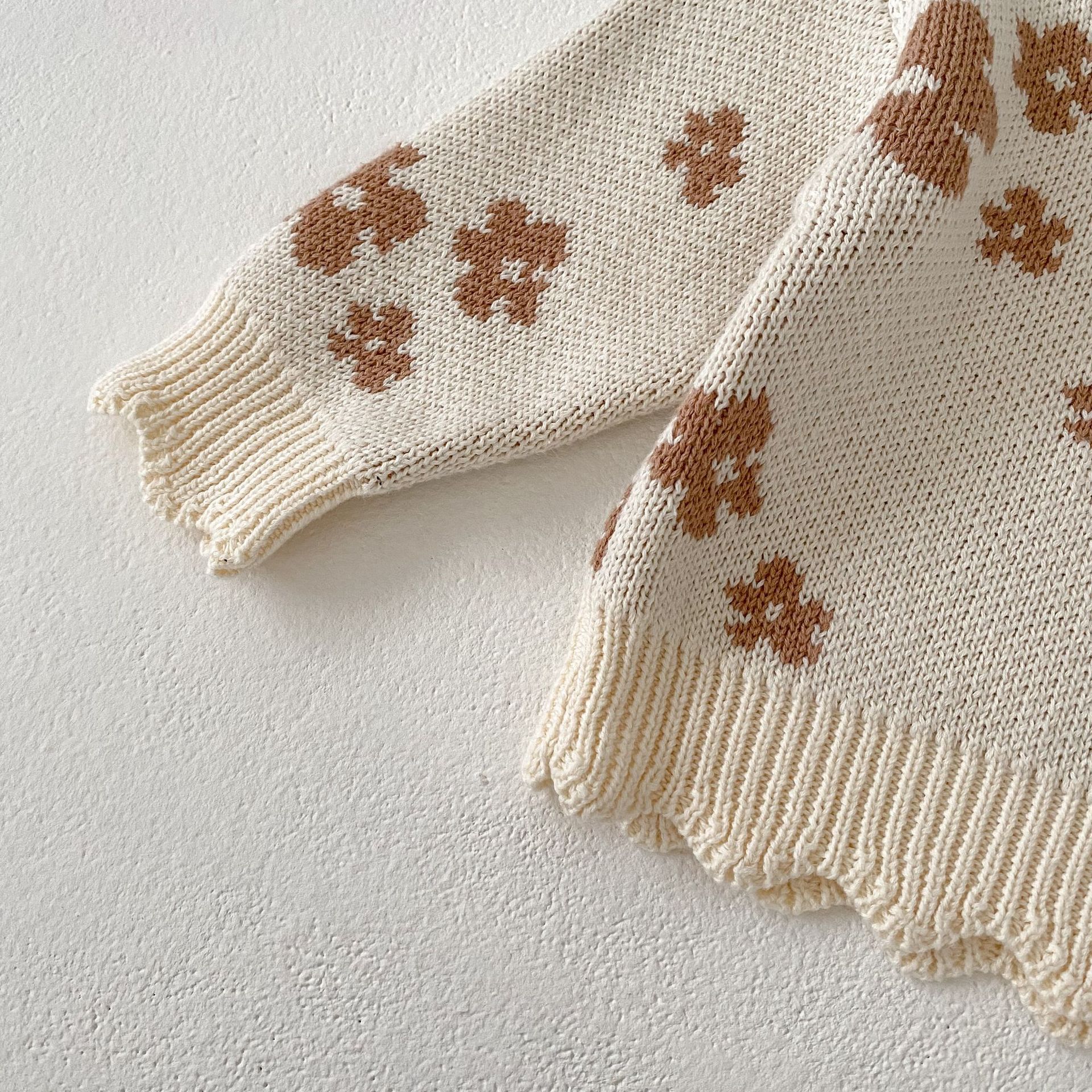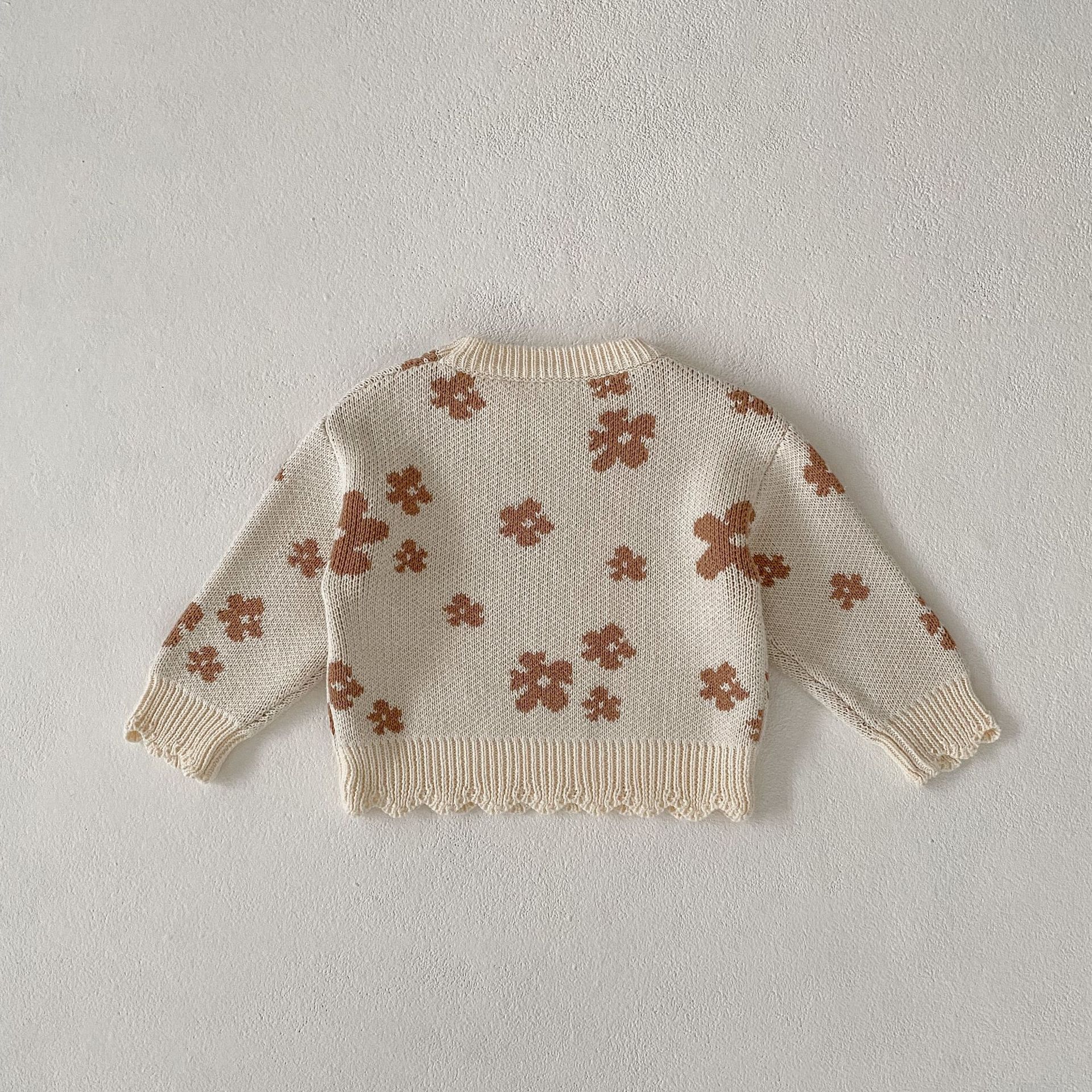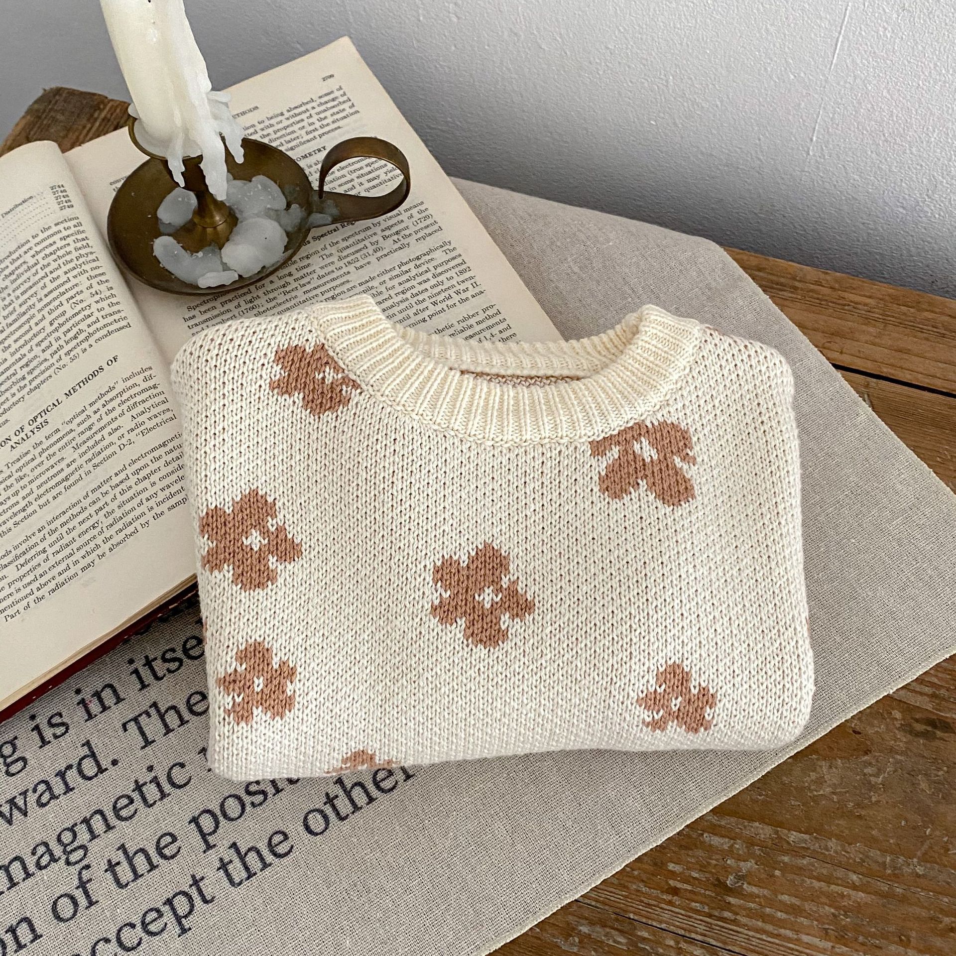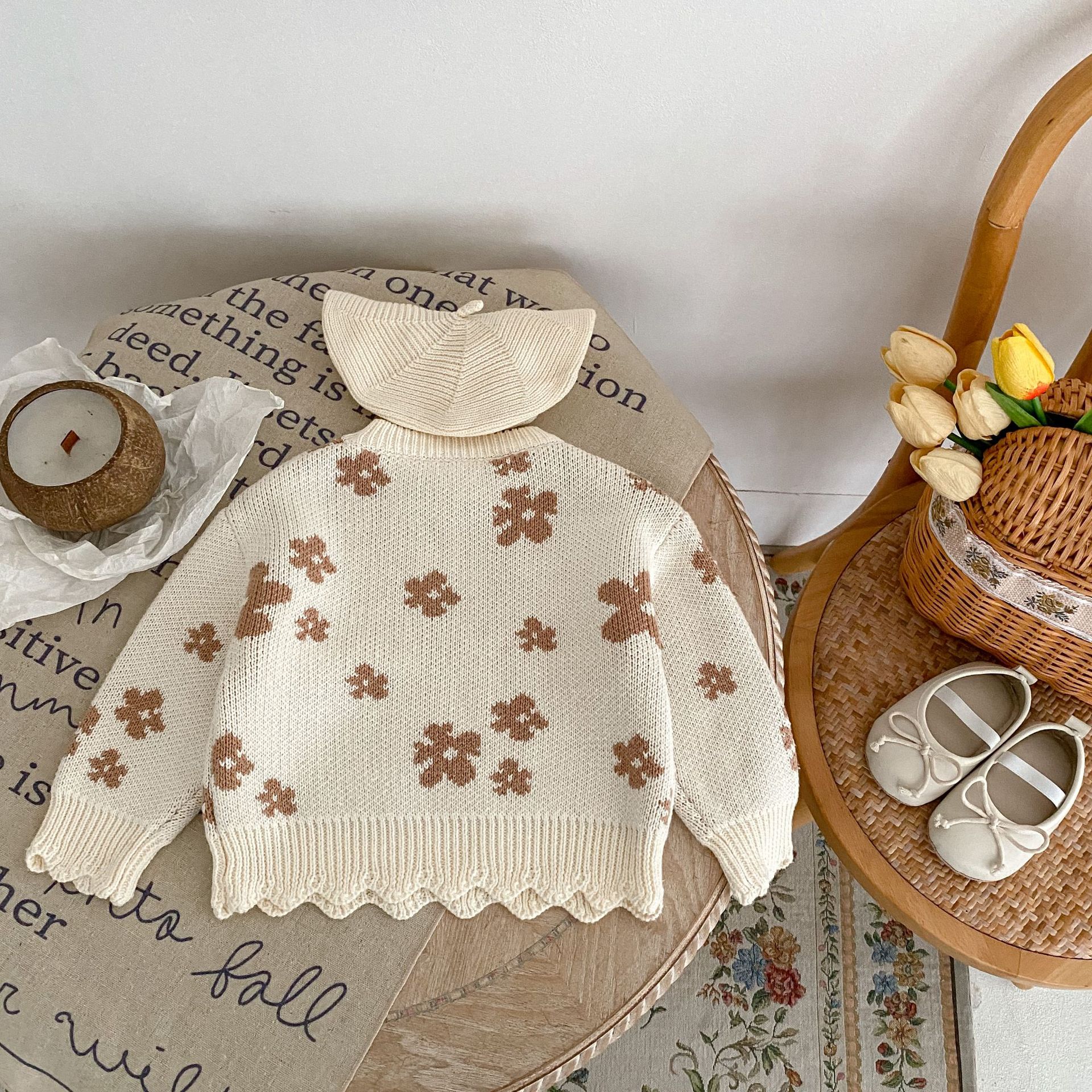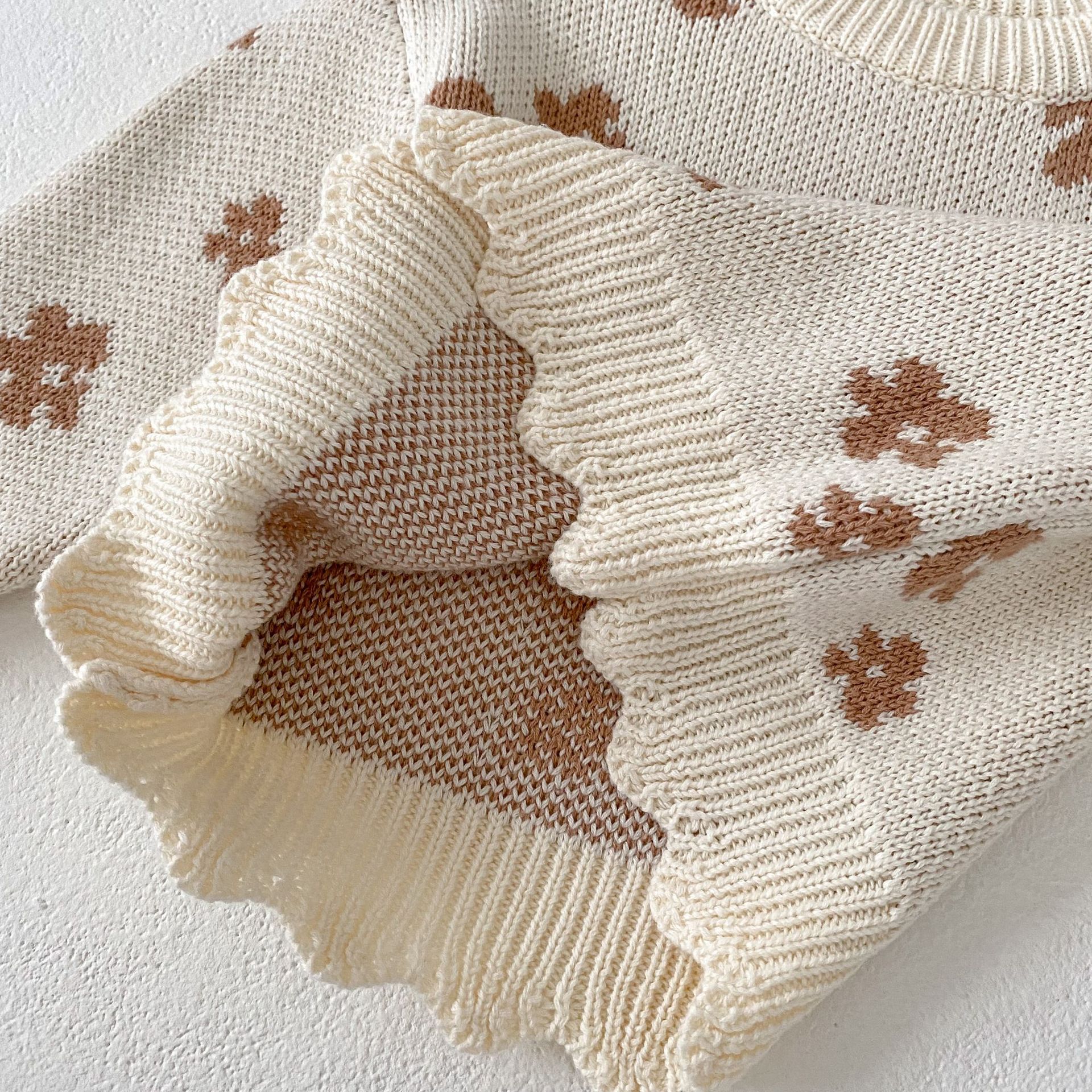 Ins 2025 가을 의류 유아 및 어린이 0-3 세 아기 소녀 꽃 자카드 풀오버 스웨터 다목적 탑스토어 가기