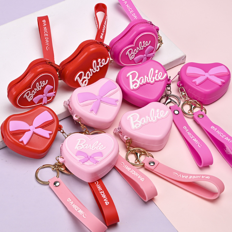뜨거운 새로운 소녀 심장 어린이 변경 보관 가방 크리 에이 티브 바비 실리콘 동전 지갑 실리콘 키 펜던트