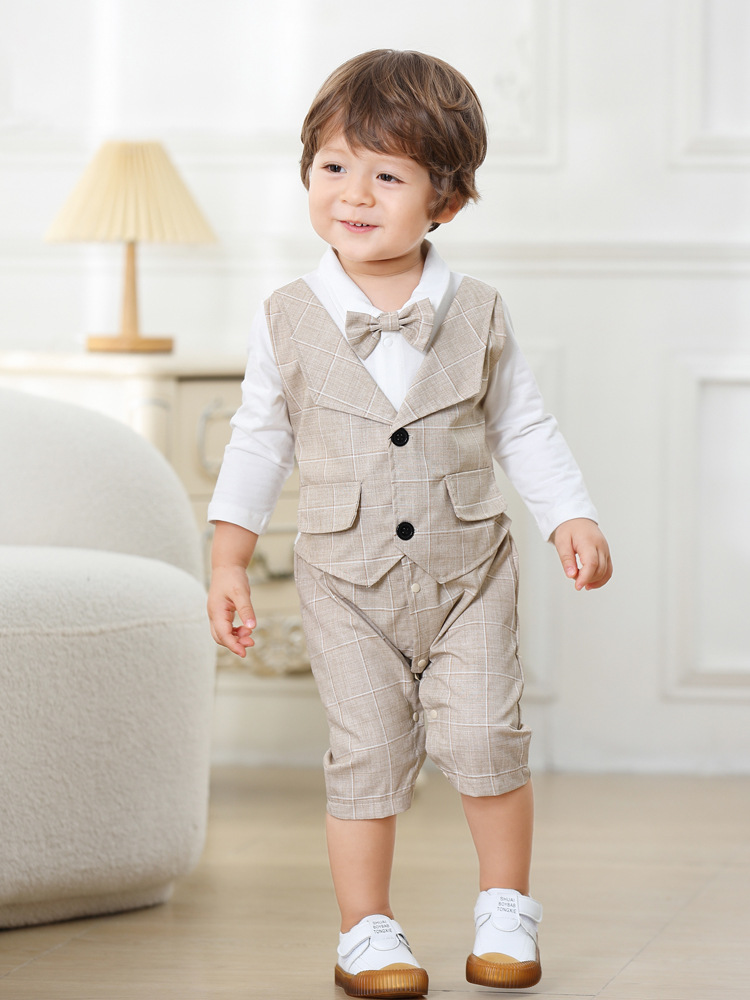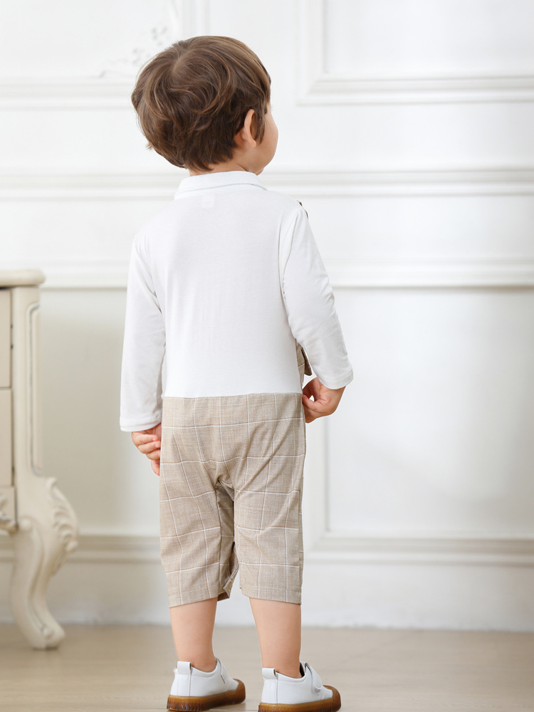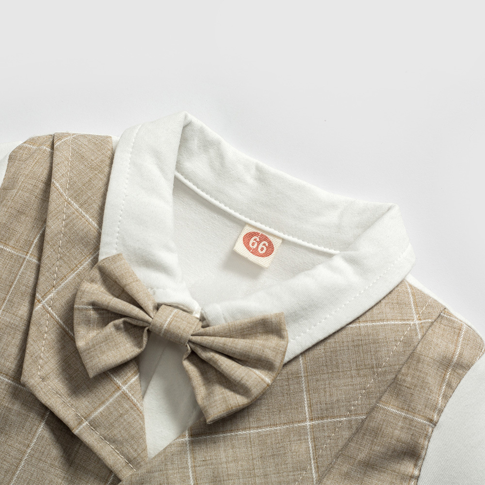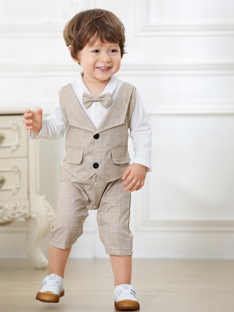재고 크로스 보더 봄과 가을 새로운 아기 잘 생긴 점프 수트 어린이 격자 무늬 가짜 2 피스 세트 제조 업체 머리카락의 세대스토어 가기