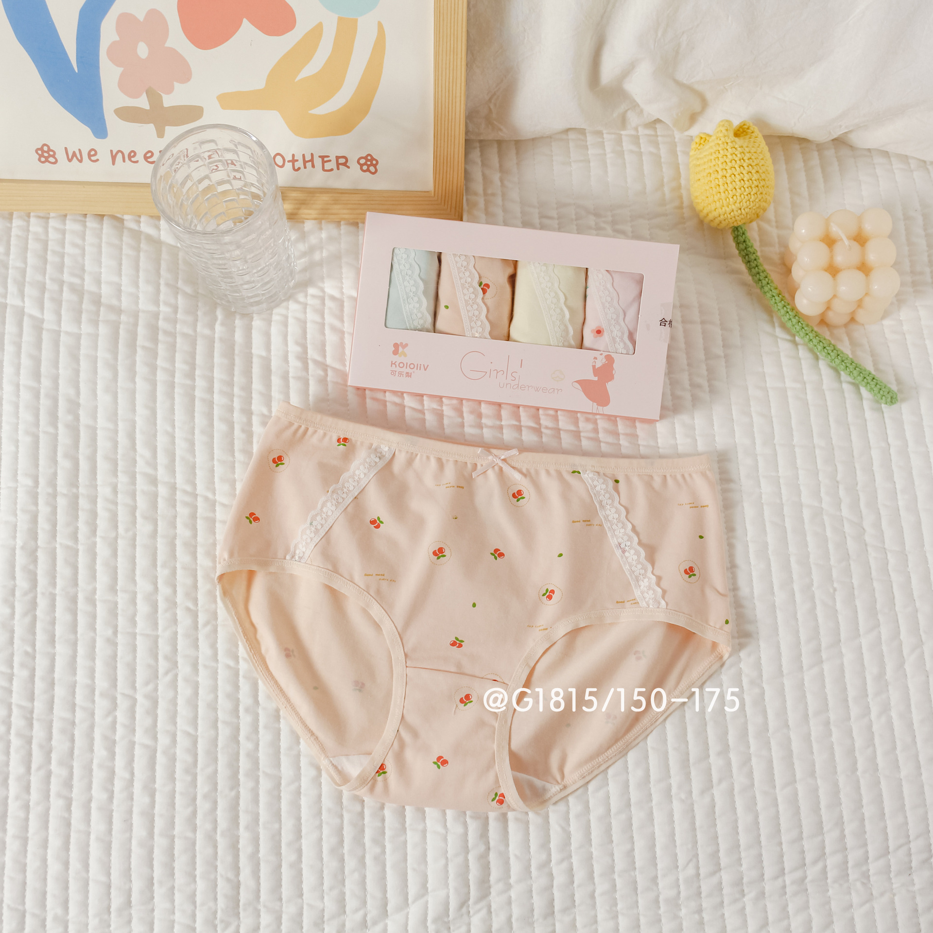 콜라 배 소녀 속옷 어린이 브리프 중학교 여학생 작은 꽃 삼각형 중간 허리 반바지 면화스토어 가기