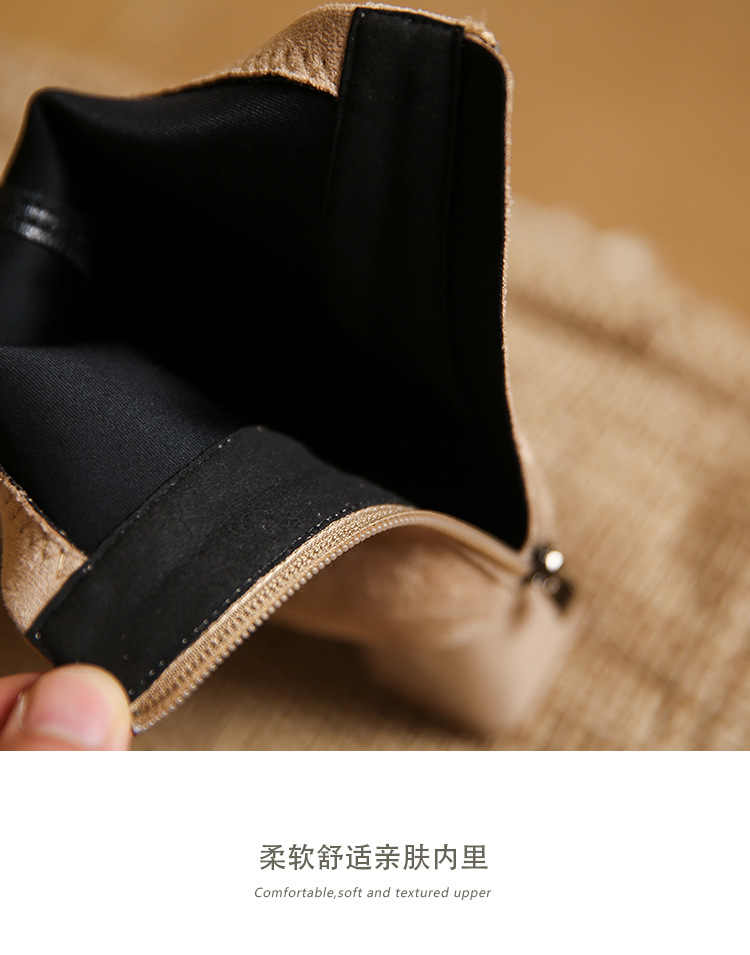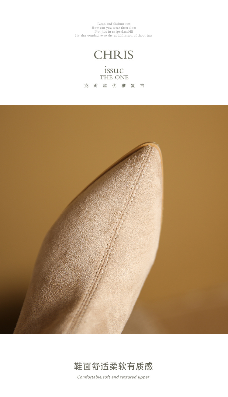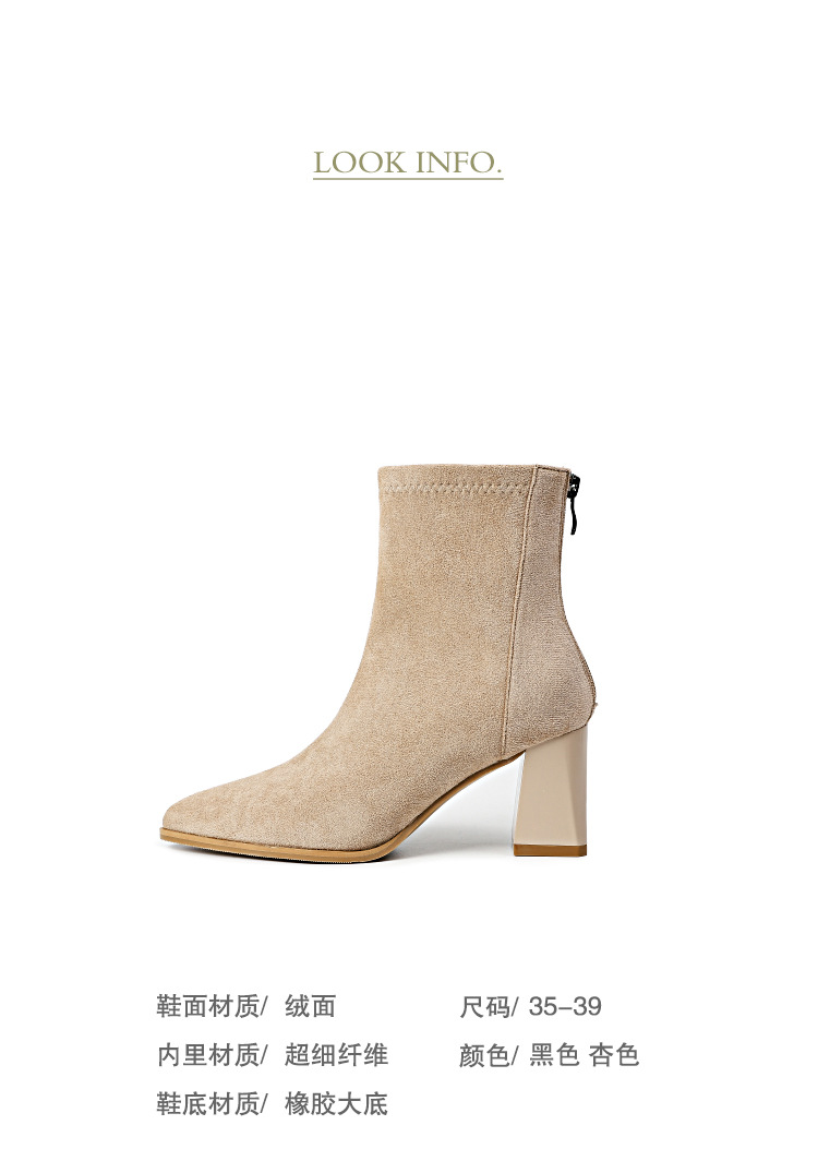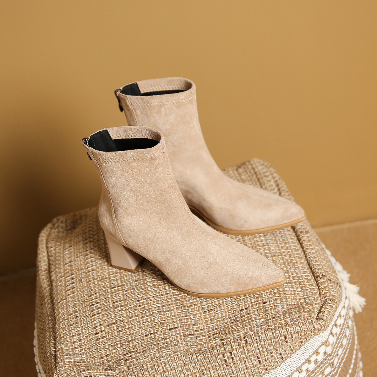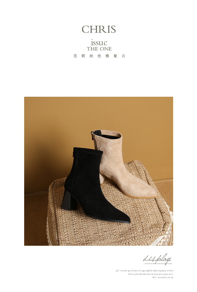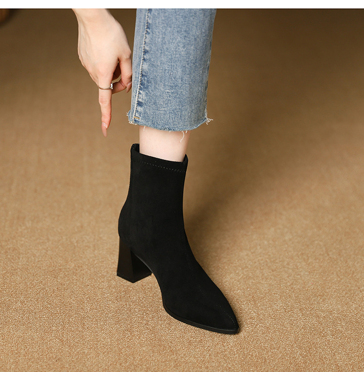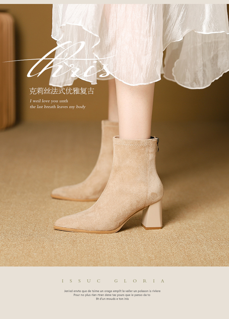 스웨이드 뾰족한 하이힐 앵클 부츠 여성용 뾰족한 부츠 후면 지퍼 앵클 부츠 봄과 가을 싱글 부츠 여성용 청키 힐 부츠스토어 가기