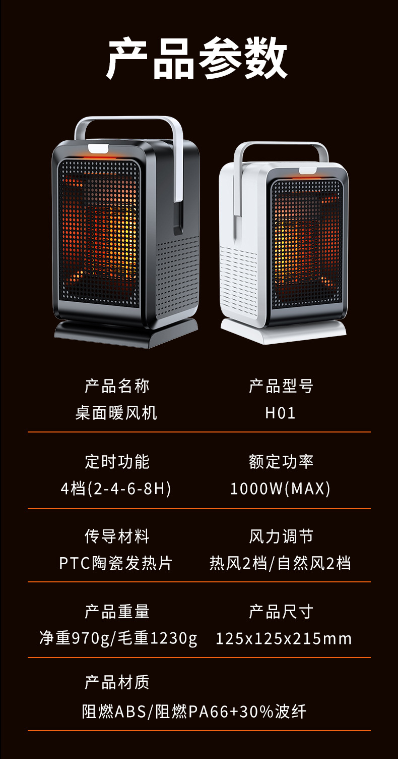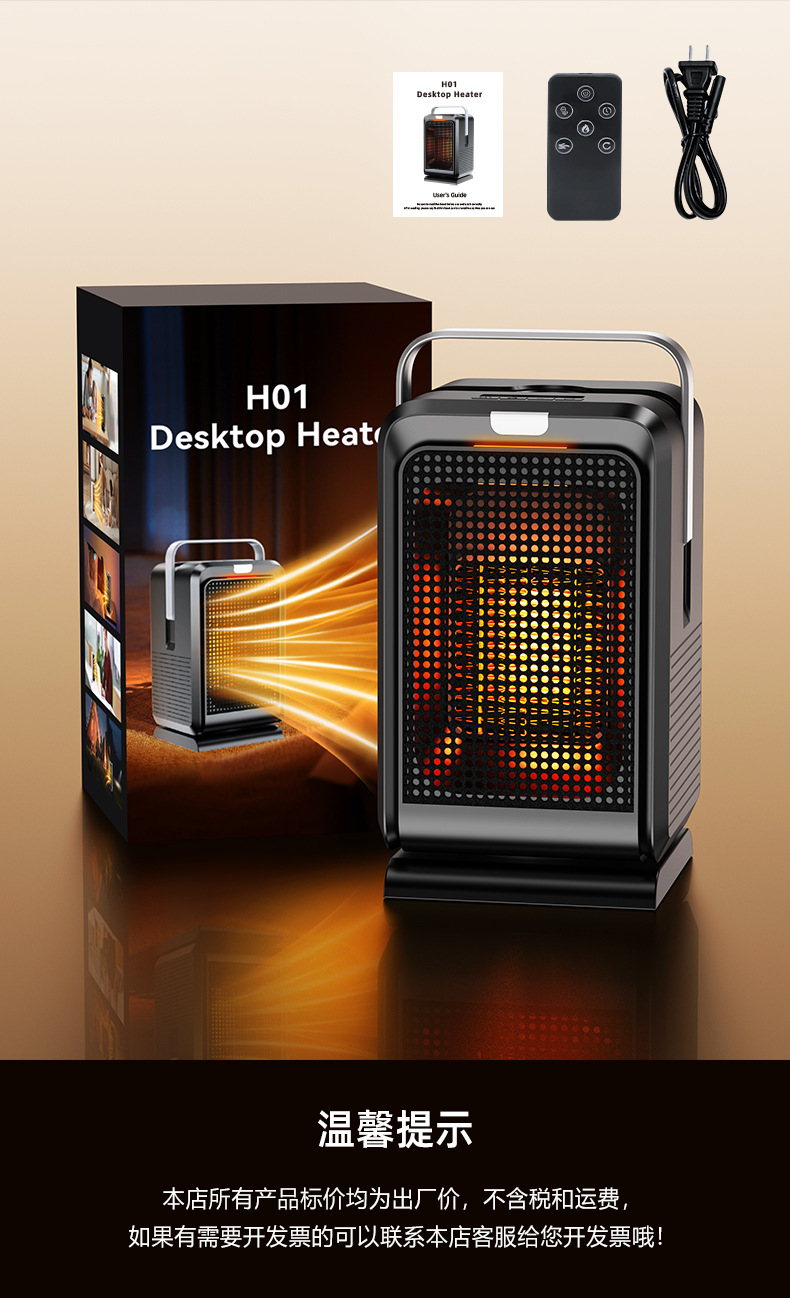 • H01 데스크탑 히터 - 블랙 - 리모콘 모델