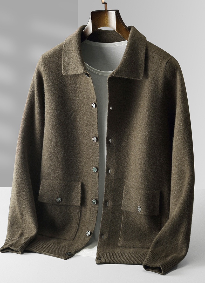 남자의 옷깃 단색 울 가디건 가을과 겨울 빈티지 포켓 두꺼운 남성 자켓 캐시미어 스웨터 POLO 세트 남성스토어 가기