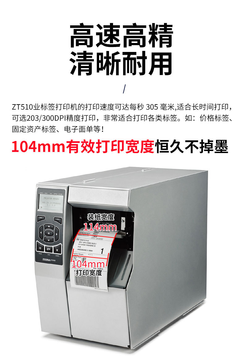 얼룩말 ZT510 산업용 등급 자체 접착 라벨 프린터 열 전사 아시아 실버 의류 태그