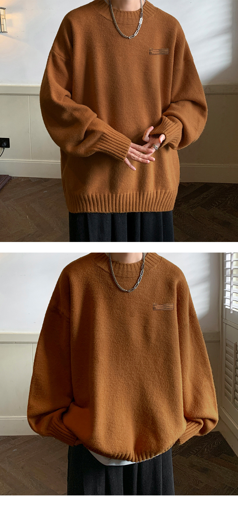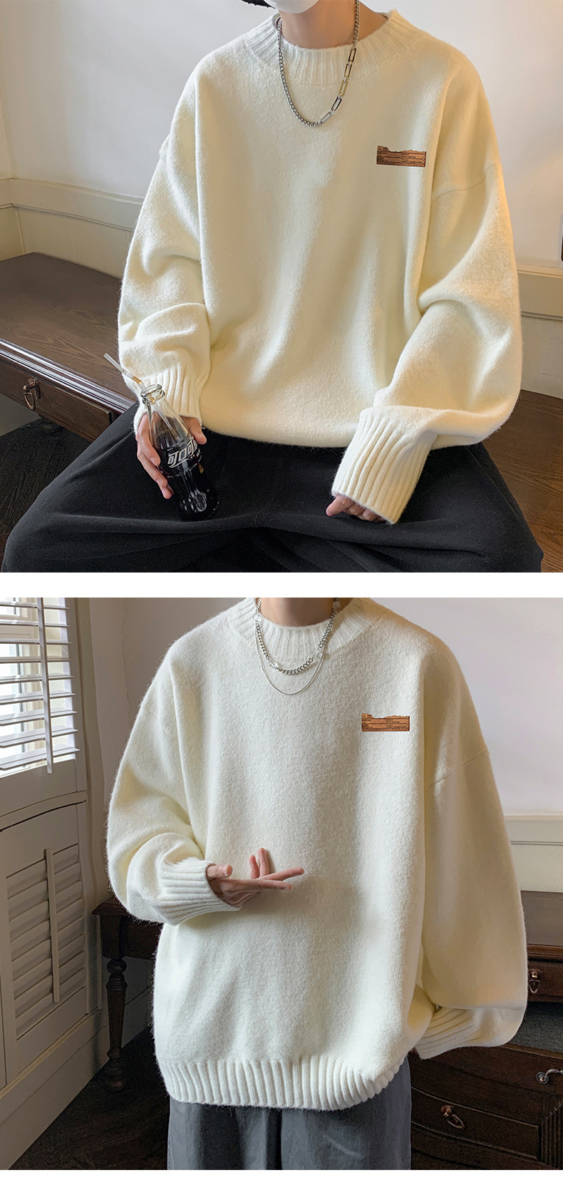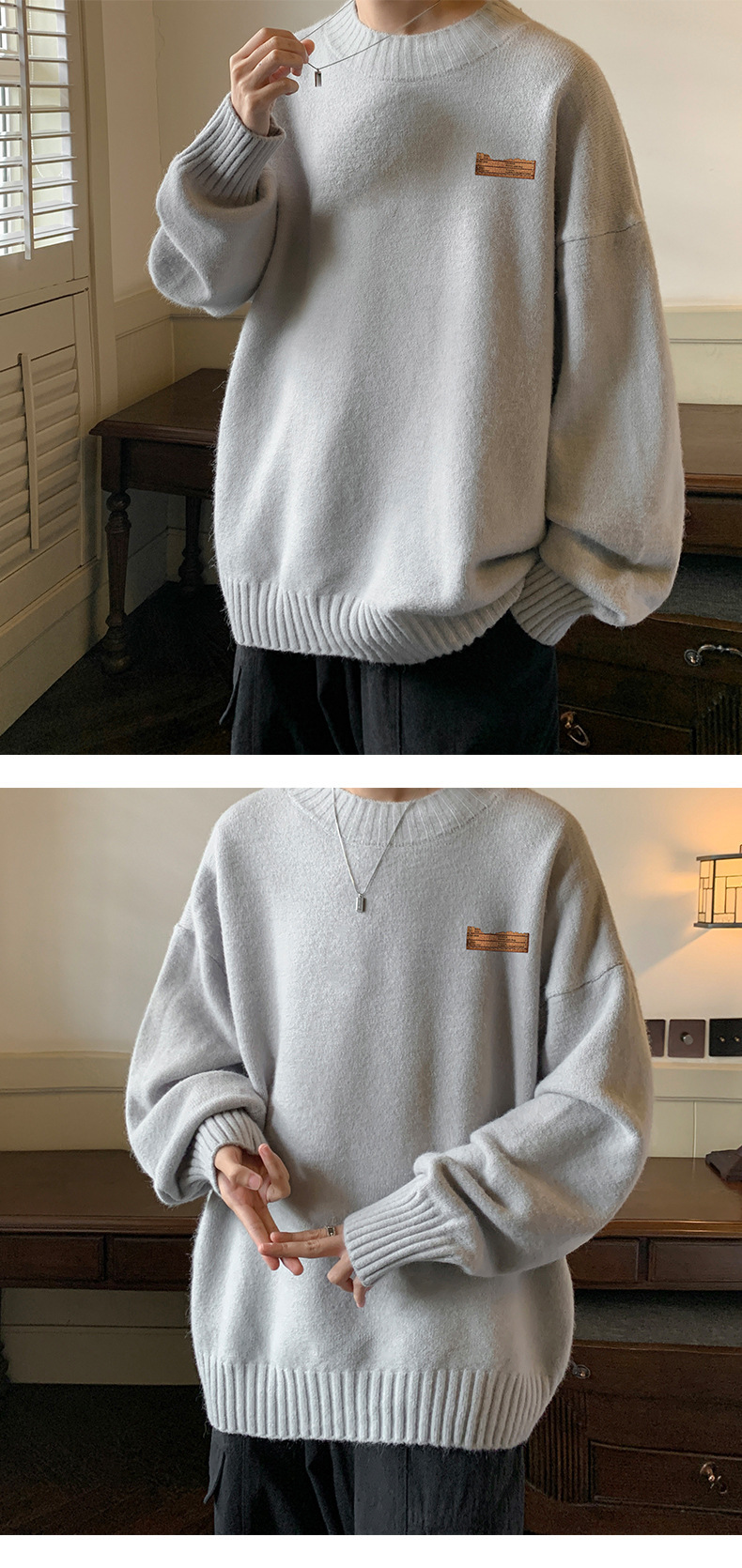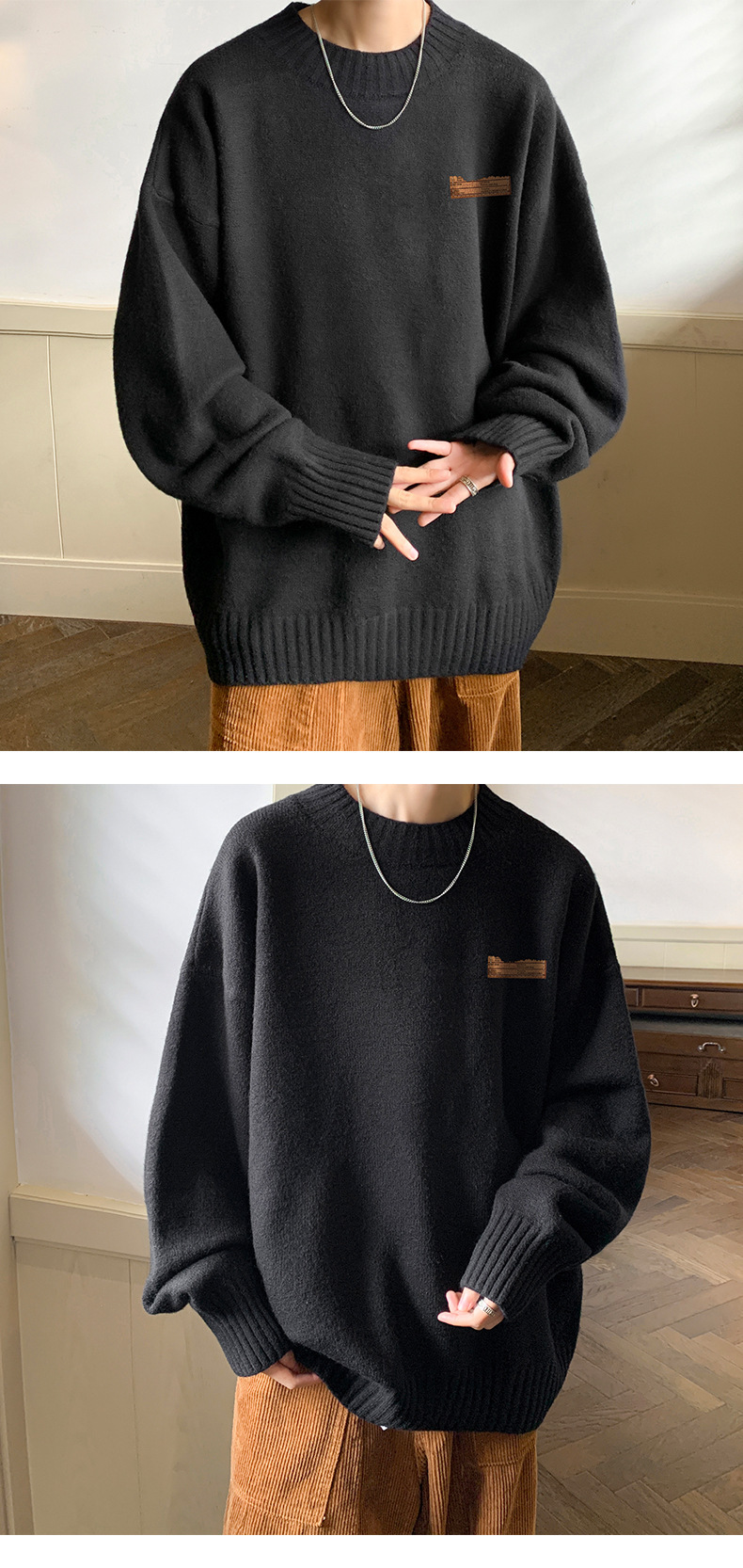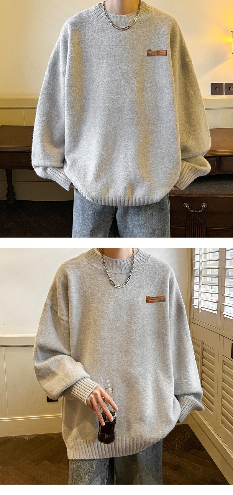 크루넥 스웨터 남자의 가을과 겨울 게으른 스타일 느슨한 내부 패션 브랜드 겨울 착용 두꺼운 스웨터 2023 신상품 스웨터스토어 가기