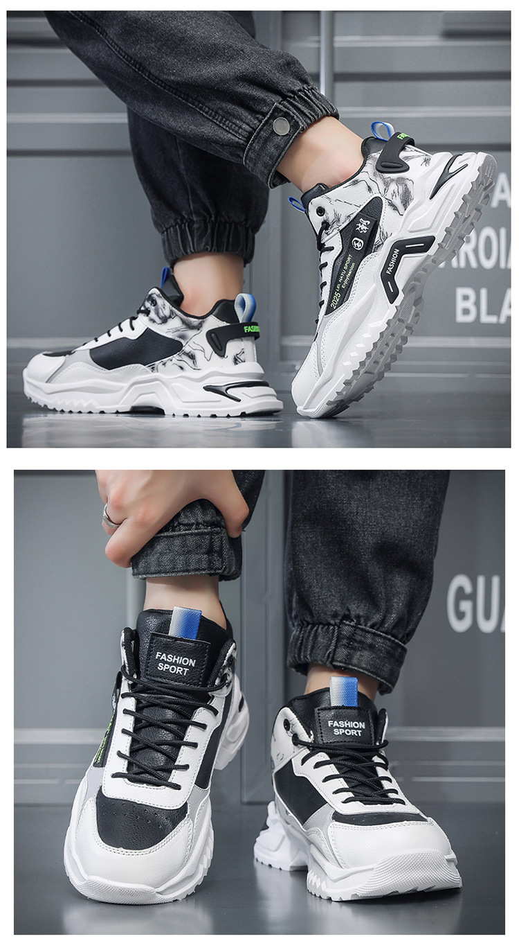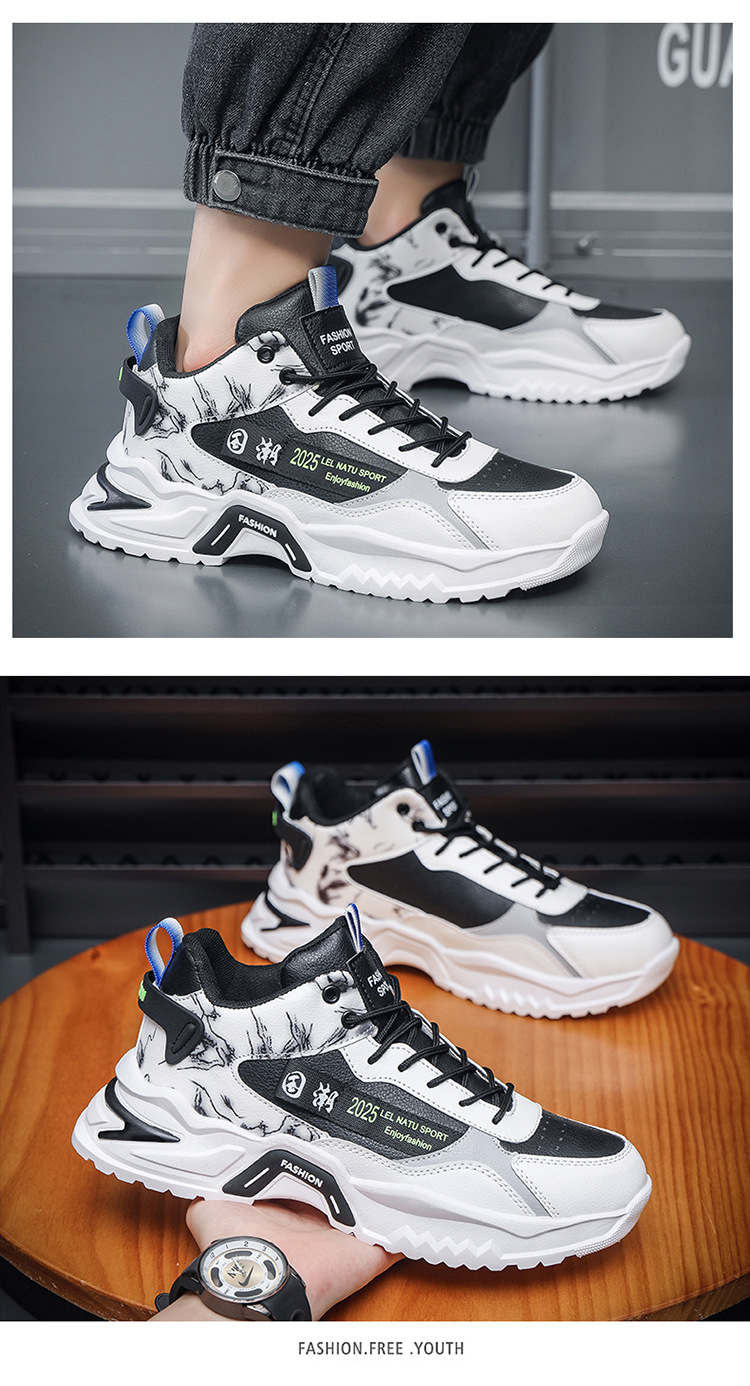 남성 신발 봄 신상 하이탑 운동화 남성 트렌디 다재다능한 흰색 신발 내부 고조 캐주얼 런닝 아빠 신발