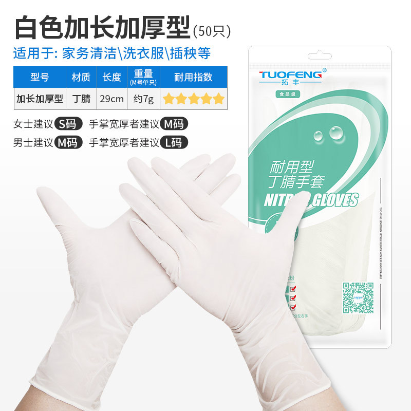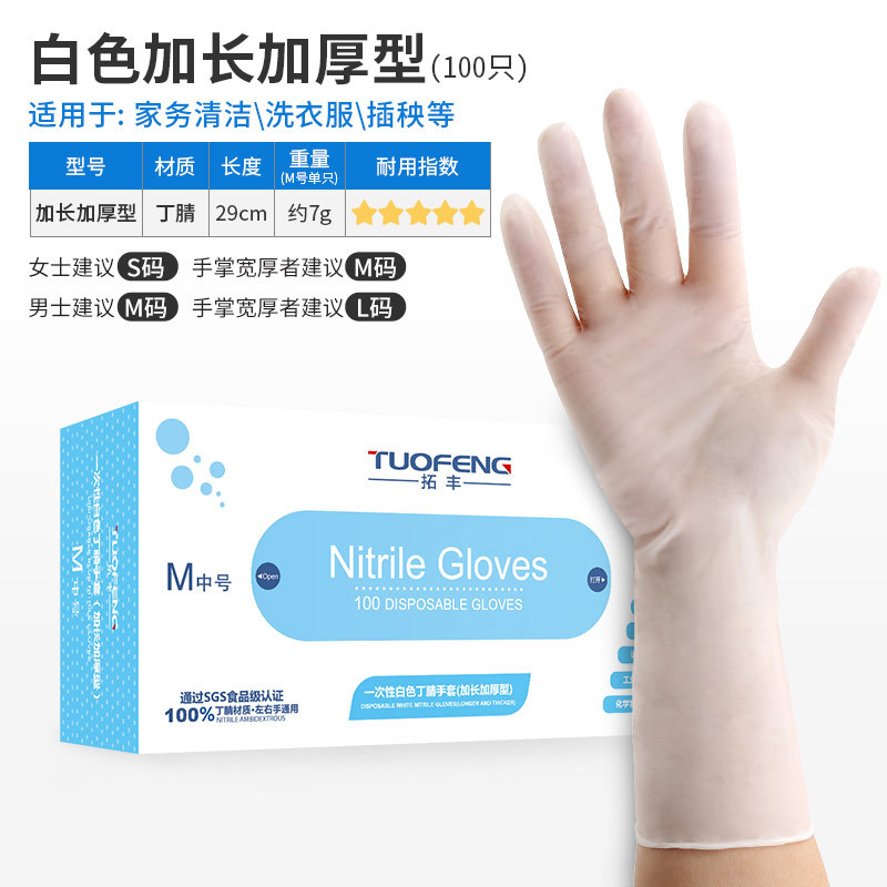 Tuofeng 일회용 장갑 확장 고무 라텍스 방수 고탄성 식품 취사 내마모성 제조 업체 도매스토어 가기