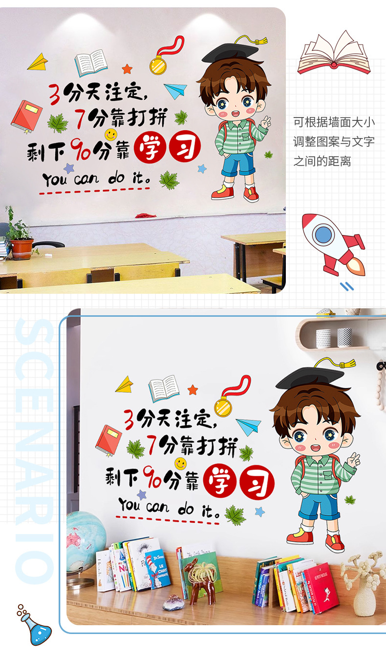 학습 스티커 방 영감 벽 스티커 장식 소년 벽 수업 레이아웃 창조적 인 스티커 교실 스티커 7052스토어 가기