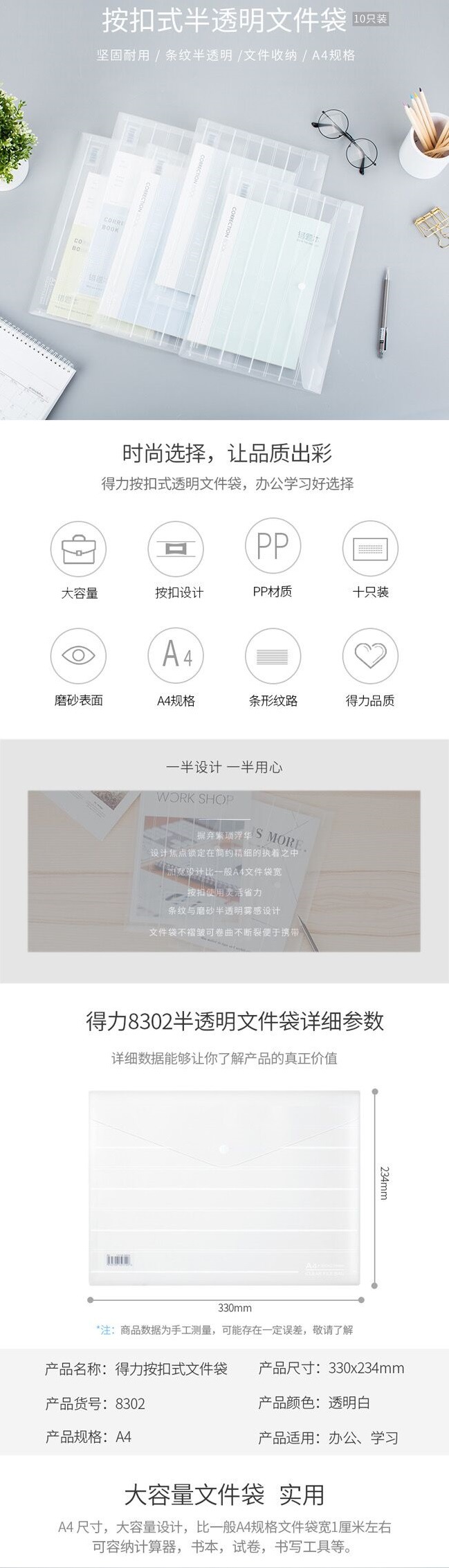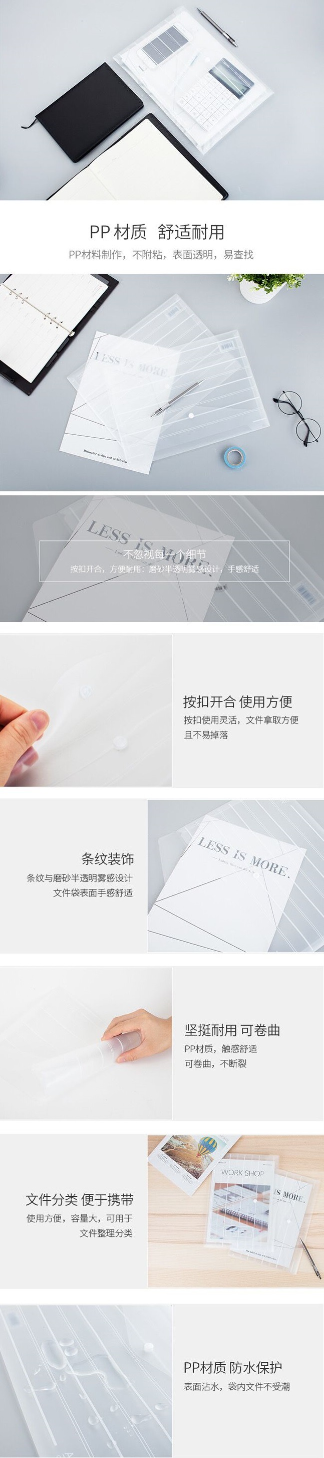 델리 8302 투명 파일 백 PP 파일 백 스냅 버튼 데이터 저장 백 A4 플라스틱 젖빛 버튼 파일 백