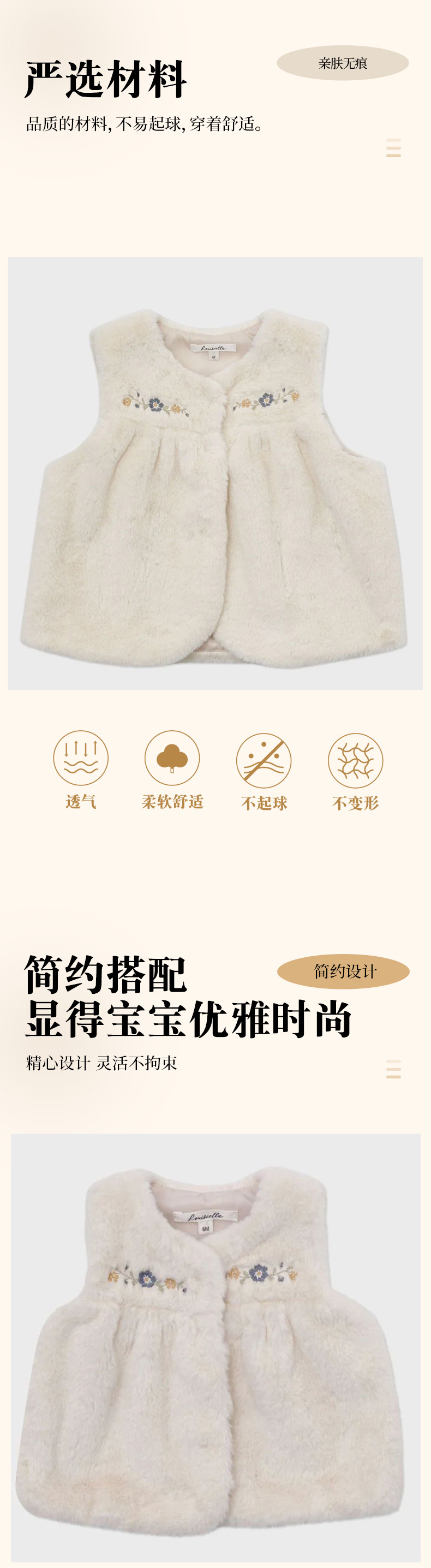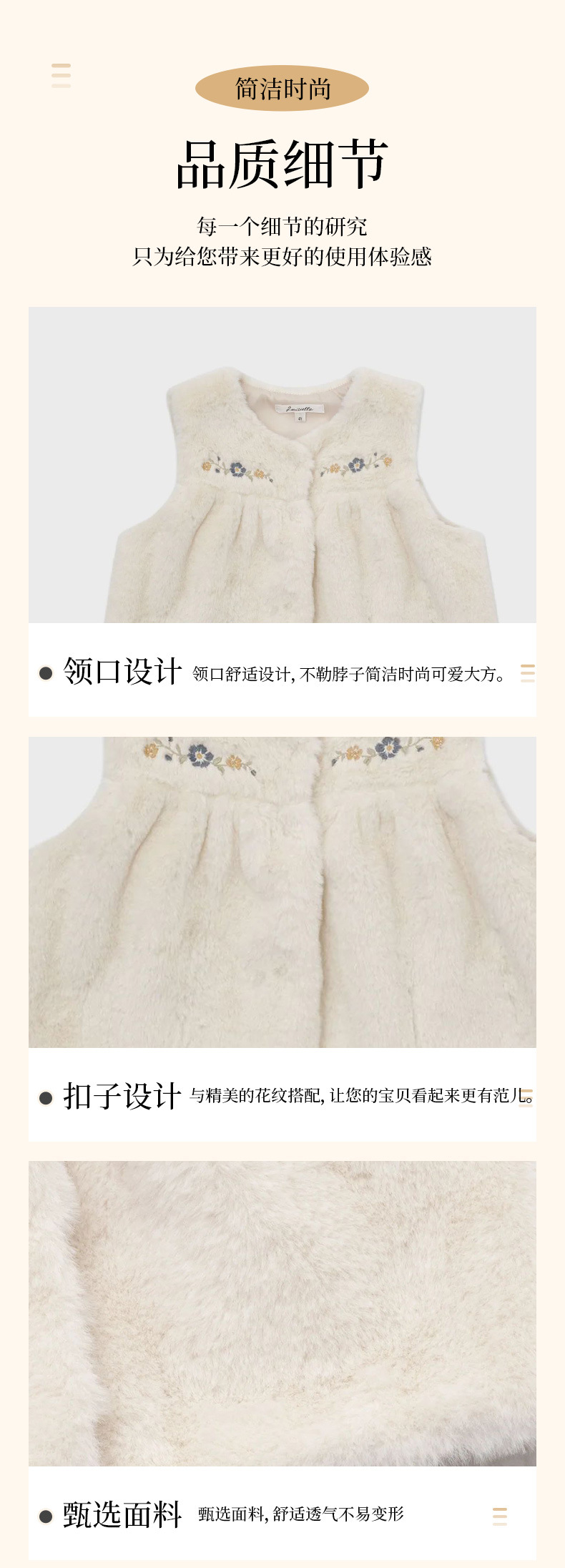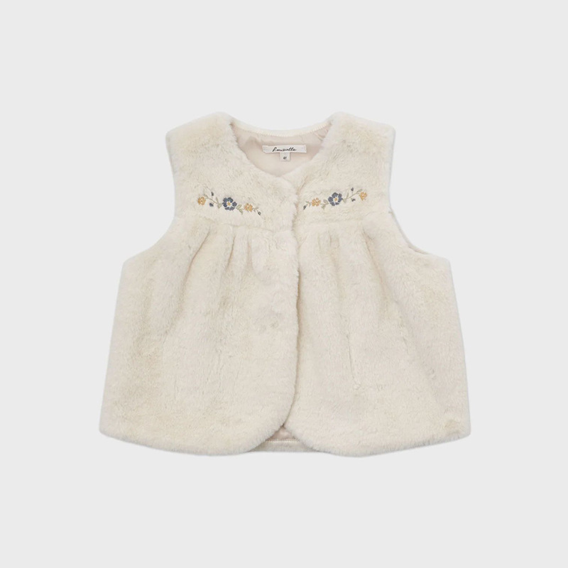 여아 조끼 재고 있음, 수출용 공주풍 달콤한 가을 겨울 LOU 인조 모피 자수 신생아 보온 조끼 외출용스토어 가기