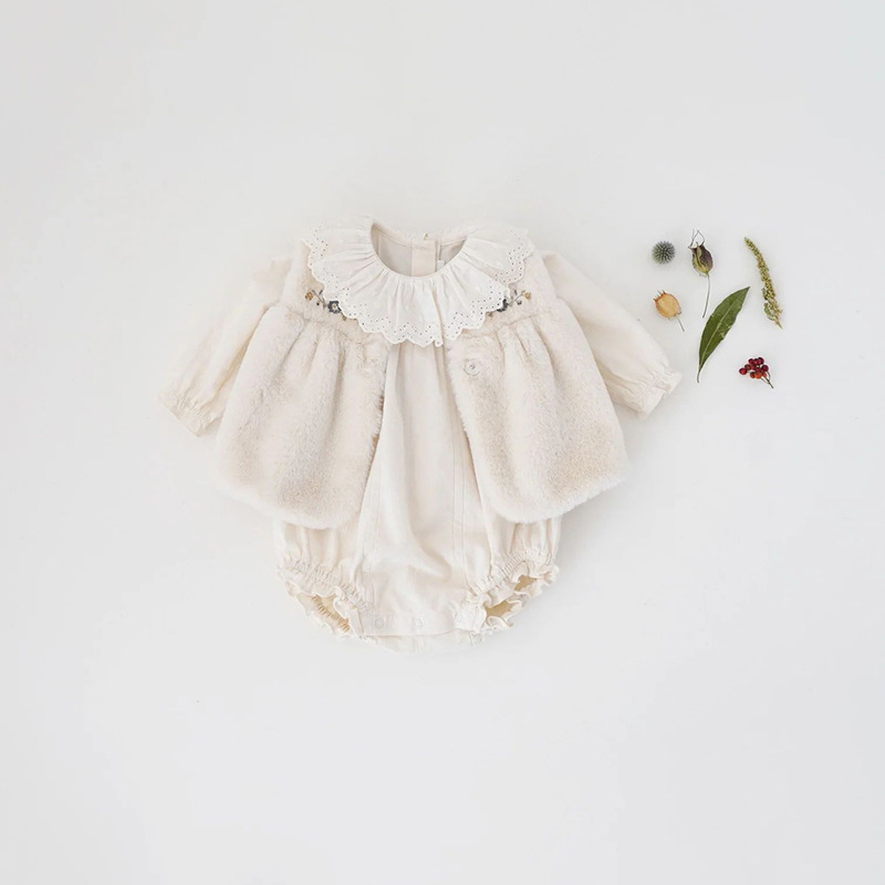 여아 조끼 재고 있음, 수출용 공주풍 달콤한 가을 겨울 LOU 인조 모피 자수 신생아 보온 조끼 외출용