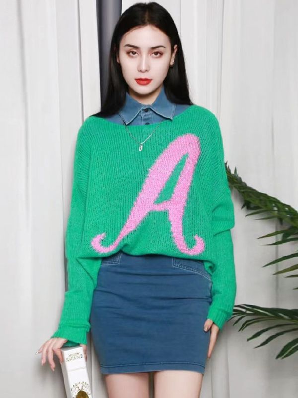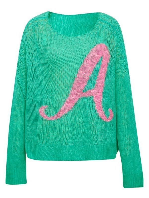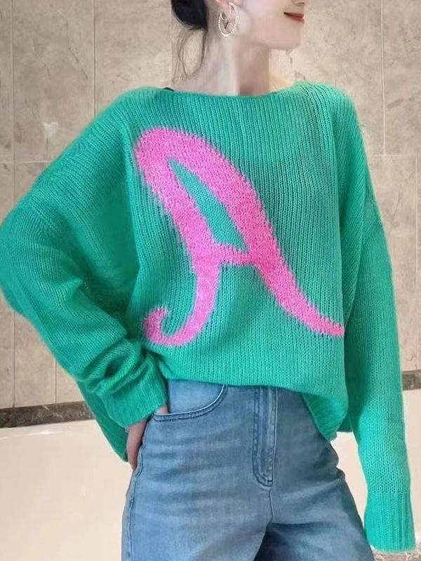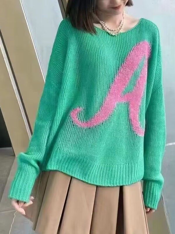 형제의 새로운 가을 2023 새로운 캐주얼 모든 매치 느슨한 슬리밍 중공 편지 녹색 캐시미어 니트 스웨터스토어 가기
