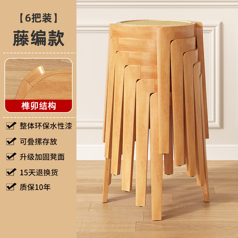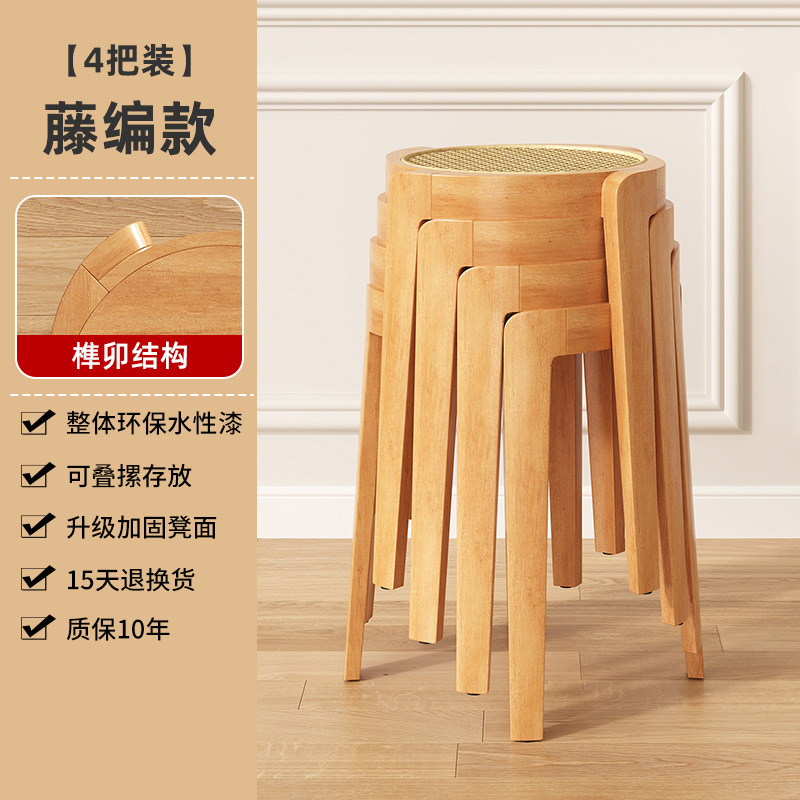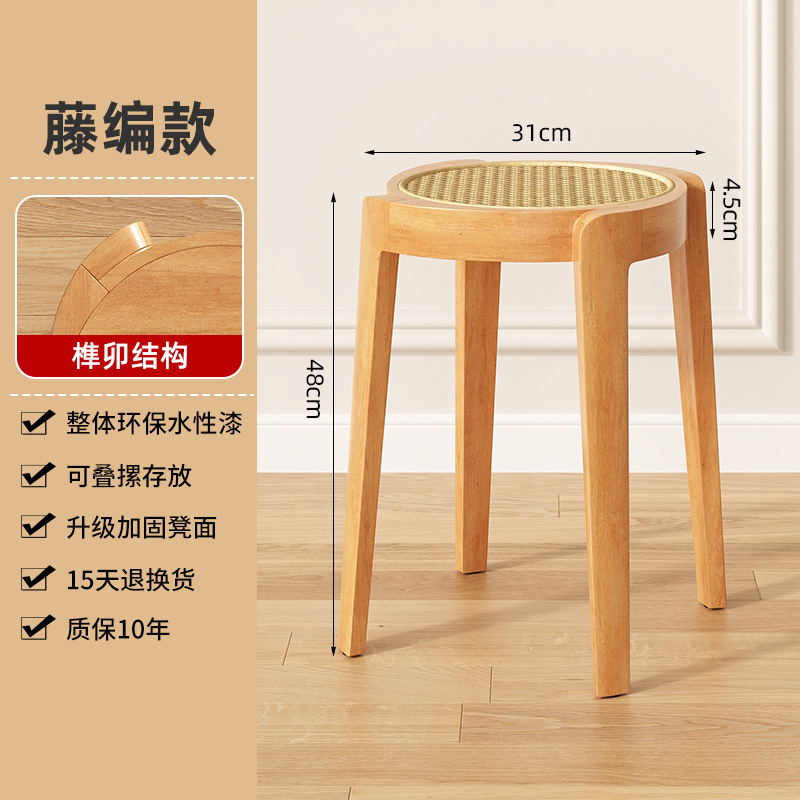 단단한 나무 의자 쌓을 수있는 등나무 가정용 작은 원형 의자 간단한 낮은 식당 의자 메이크업 의자 거실 벤치 두꺼운 의자