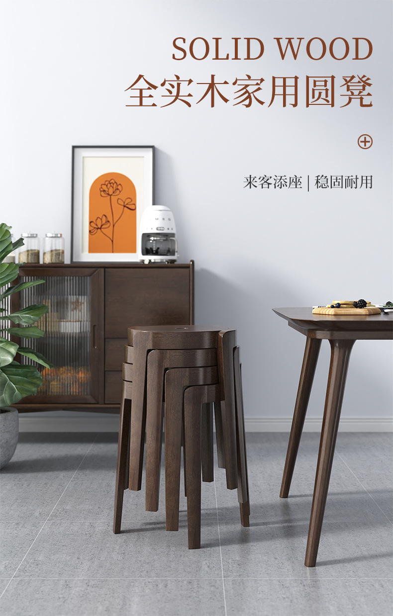 단단한 나무 의자 쌓을 수있는 등나무 가정용 작은 원형 의자 간단한 낮은 식당 의자 메이크업 의자 거실 벤치 두꺼운 의자스토어 가기