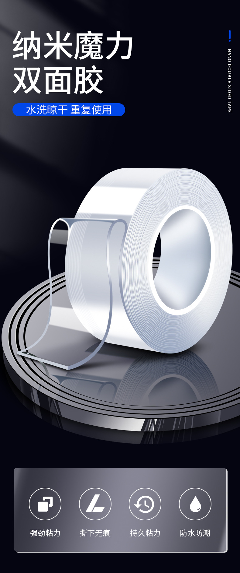 도매 나노 양면 접착제 높은 접착 강도 고정 투명 비 표시 나노 테이프 세척 아크릴 양면 접착제스토어 가기