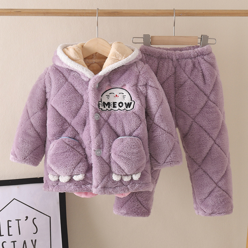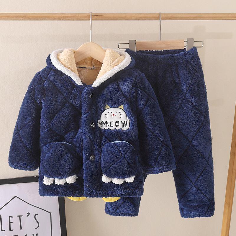 겨울 어린이 잠옷 3 층 면 기모 두꺼운 소년의 작은 중형 및 대형 어린이 아기의 홈 코트