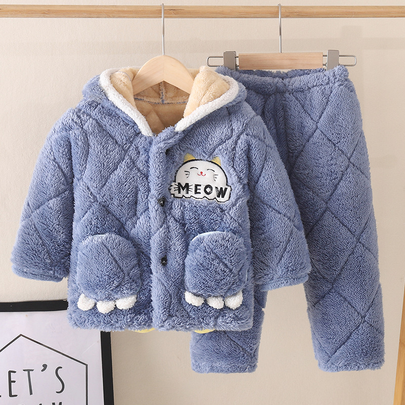 겨울 어린이 잠옷 3 층 면 기모 두꺼운 소년의 작은 중형 및 대형 어린이 아기의 홈 코트스토어 가기
