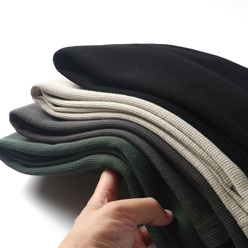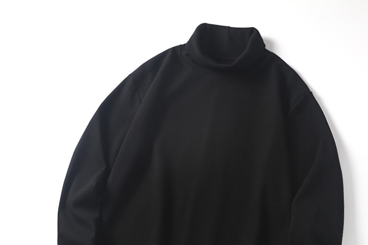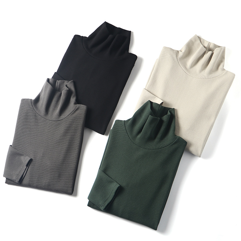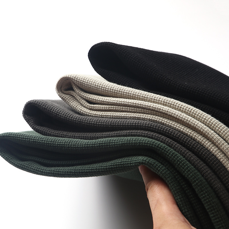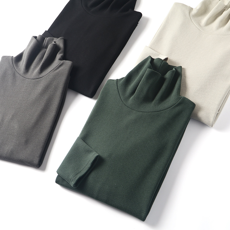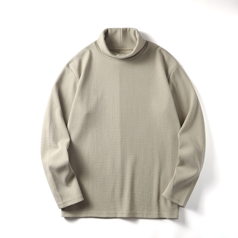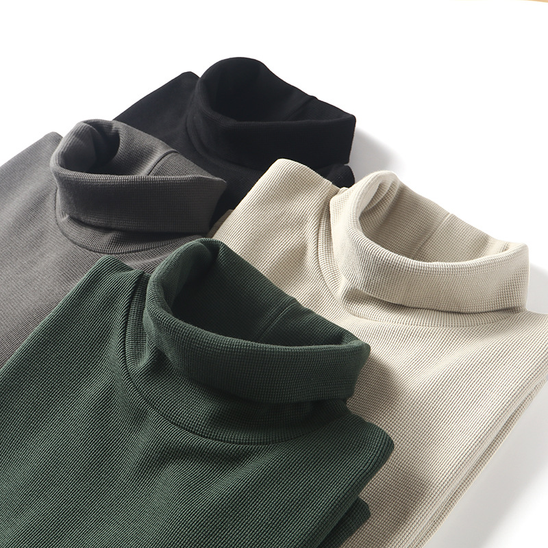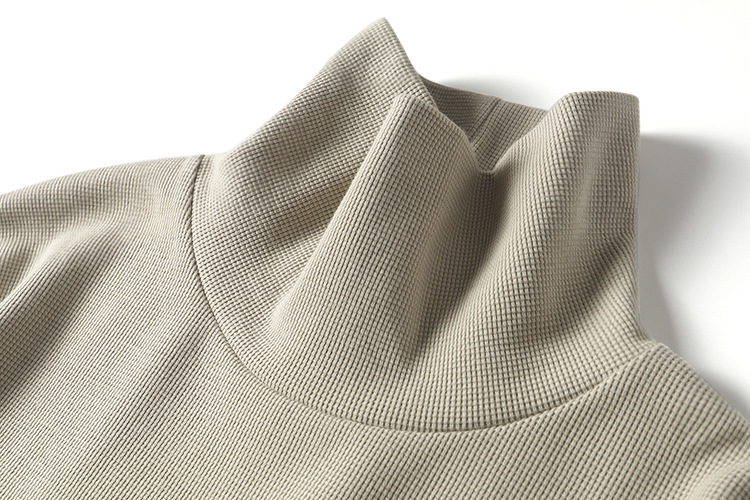 직물에주의하십시오! 320g 무거운 니트 와플! 섬세함! 남성용 하이 칼라 단색 긴 소매 티셔츠