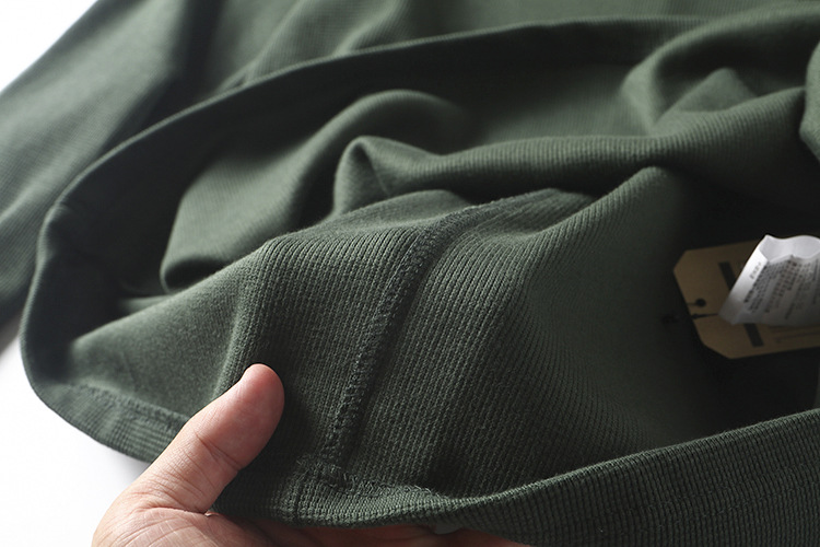 직물에주의하십시오! 320g 무거운 니트 와플! 섬세함! 남성용 하이 칼라 단색 긴 소매 티셔츠스토어 가기