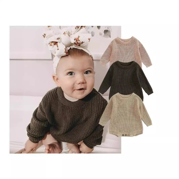跨境外贸欧美哈衣包邮童毛衣婴幼儿秋冬纯棉A类 连体包屁爬服毛衣