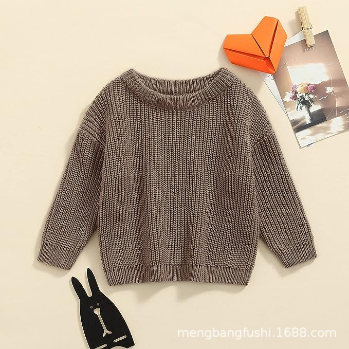 包邮跨境现货婴儿纯棉针织毛衣圆领套头衫A类9色森系打底衫男女童