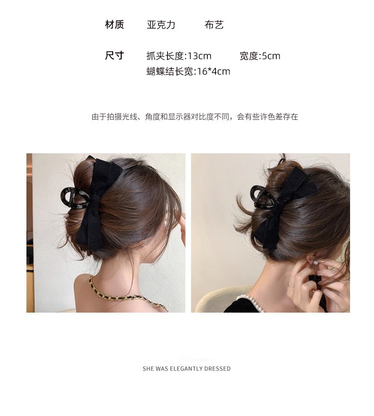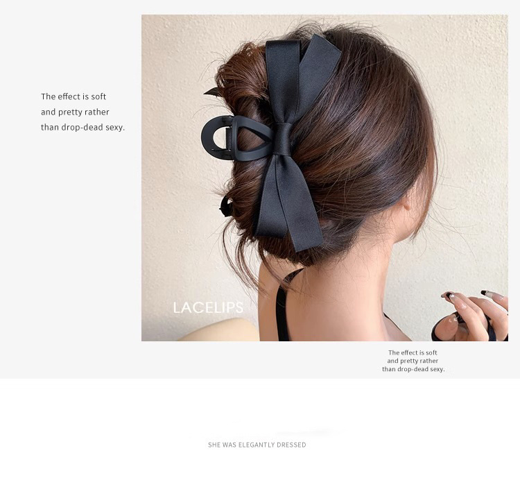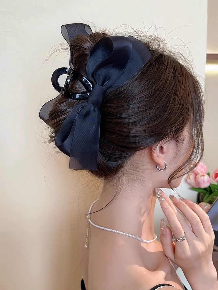 햅번 스타일 블랙 리본 머리핀 여성용 대형 헤어핀 인터넷 인기 머리핀 뒷머리 샤크클립 헤어 액세서리 출근룩