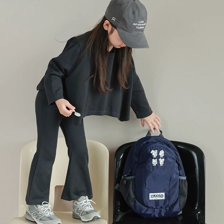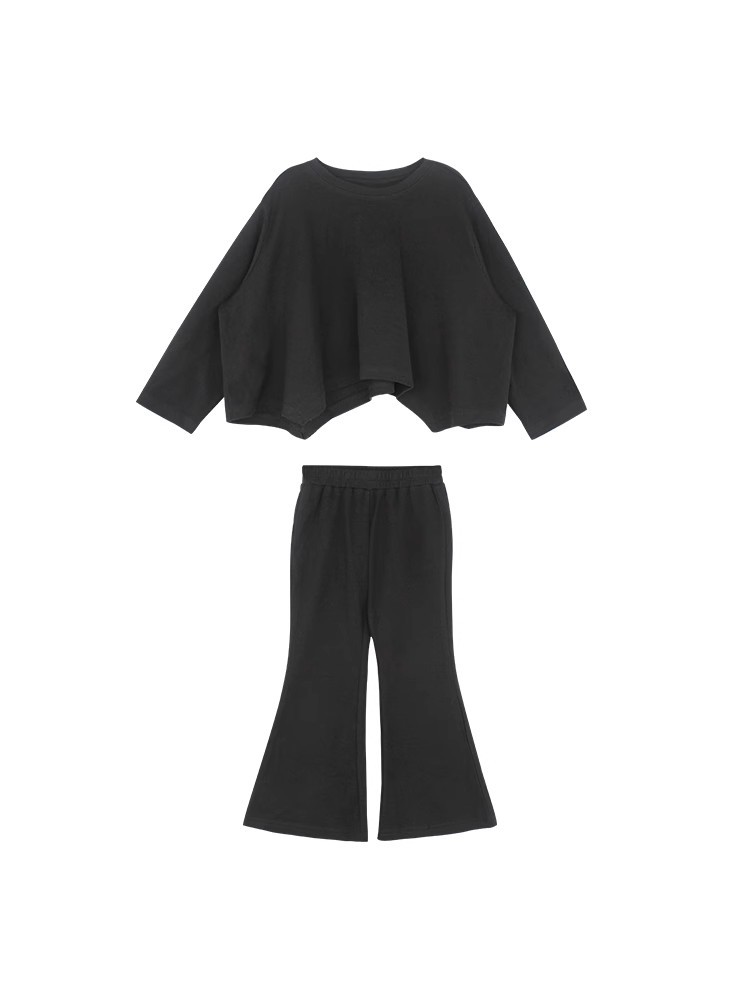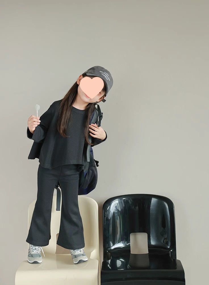여자 정장 느슨한 긴팔 박쥐 셔츠와 플레어 바지 25 봄, 가을 새로운 대외 무역 아동 의류 세대 3-8 세
