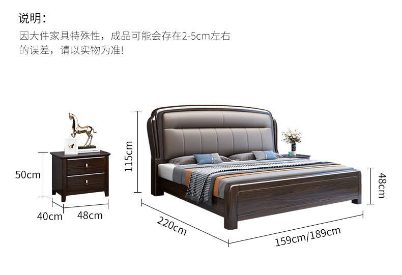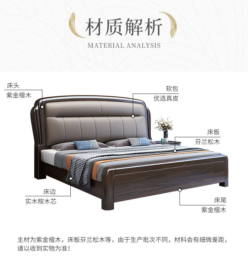 자금단 원목 침대 1.8m 더블 침대 1.5m 가죽 침대 소프트 패키지 마스터 침실 중국식 원목 침대 제조업체 직판
